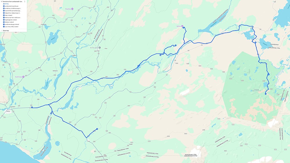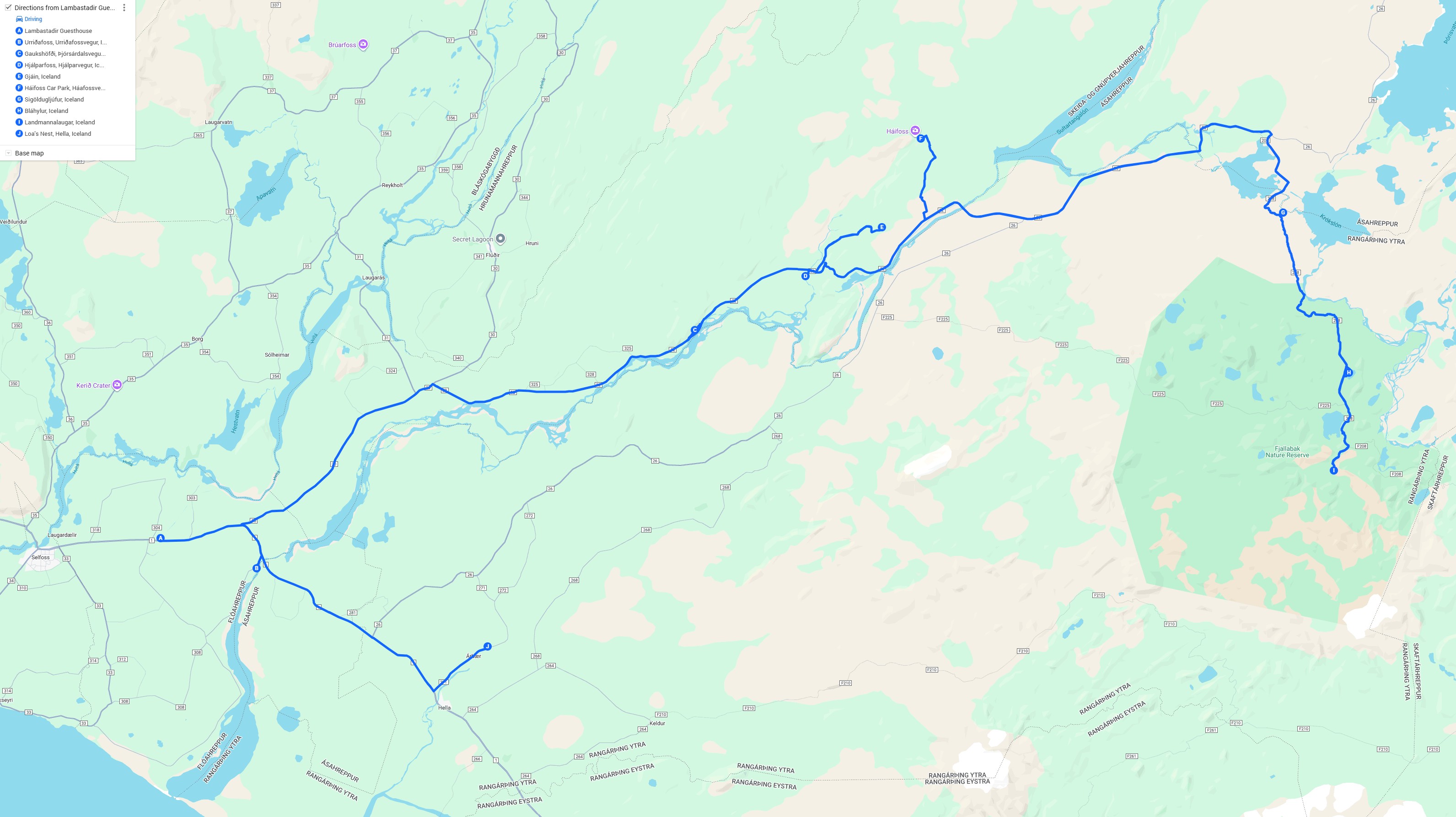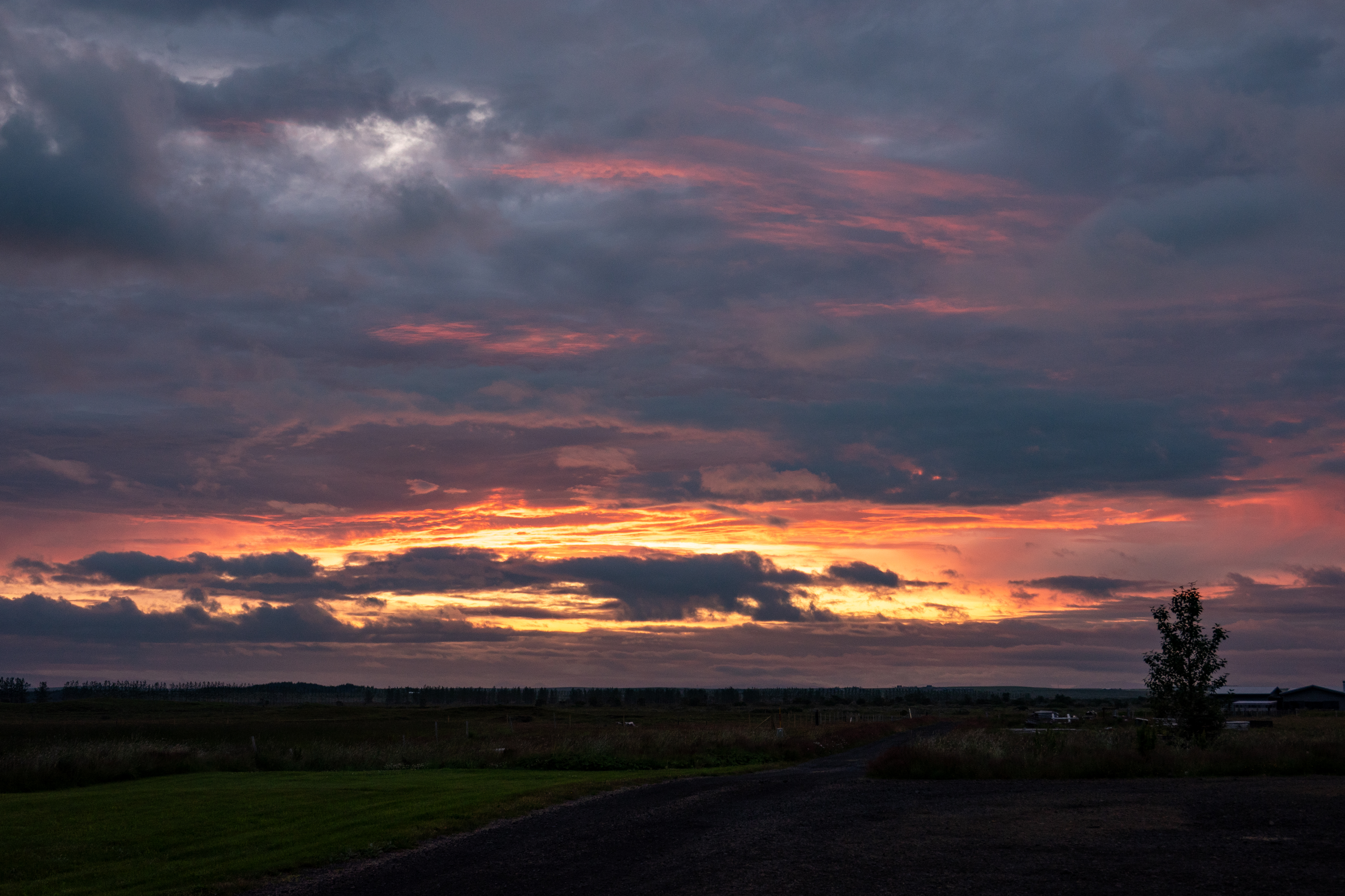 There was a shorter route about 2/3 of the way back, but a minute or two after starting on it, we realized it was gravel, and Justin just turned around - he was through with gravel roads for the day. Back on Road 32 (or maybe Road 30), we saw a large group of horses, more or less where we’d seen them this morning. They were jogging by the road, and some even on the road - they probably weren’t expecting too many vehicles at 22:30. We and the other couple cars in the area were basically stopped though, so there was no issue. We got a photo of some other horses a bit later in the drive, just before getting back to the Ring Road.