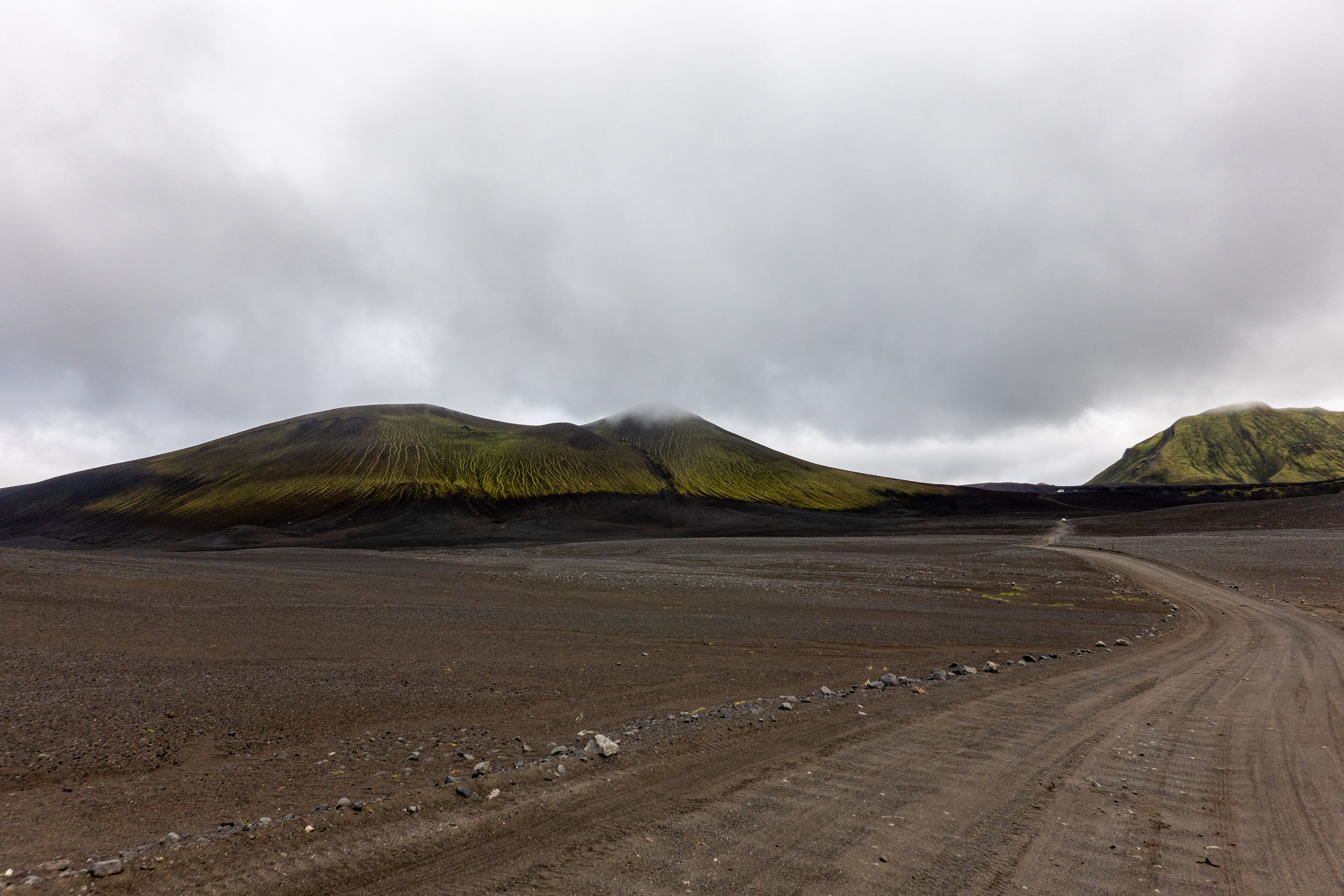 It was only a 5-10 minute walk to the edge of some cliffs, and we could see down and to the right several falls next to one another, with green cliffs and turquoise water. It was crazy windy, but there was no mist or rain, thankfully. It was quite photogenic, and we could have easily stayed longer, but we didn’t want to dilly-dally, as we still had a lot of driving, plus a hike, to do. Back headed south on Road 208, we were now really in the middle of nowhere, vaguely reminiscent of either the Saddle Road in Hawaii, or Southwest Bolivia.