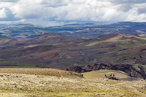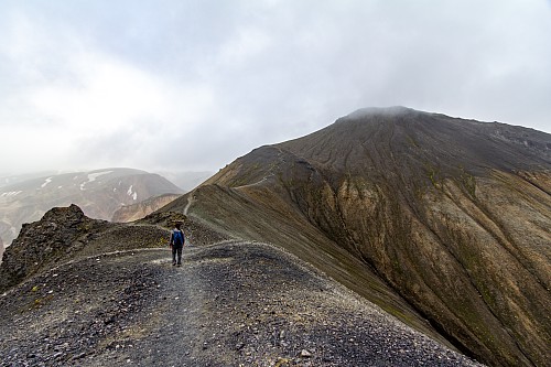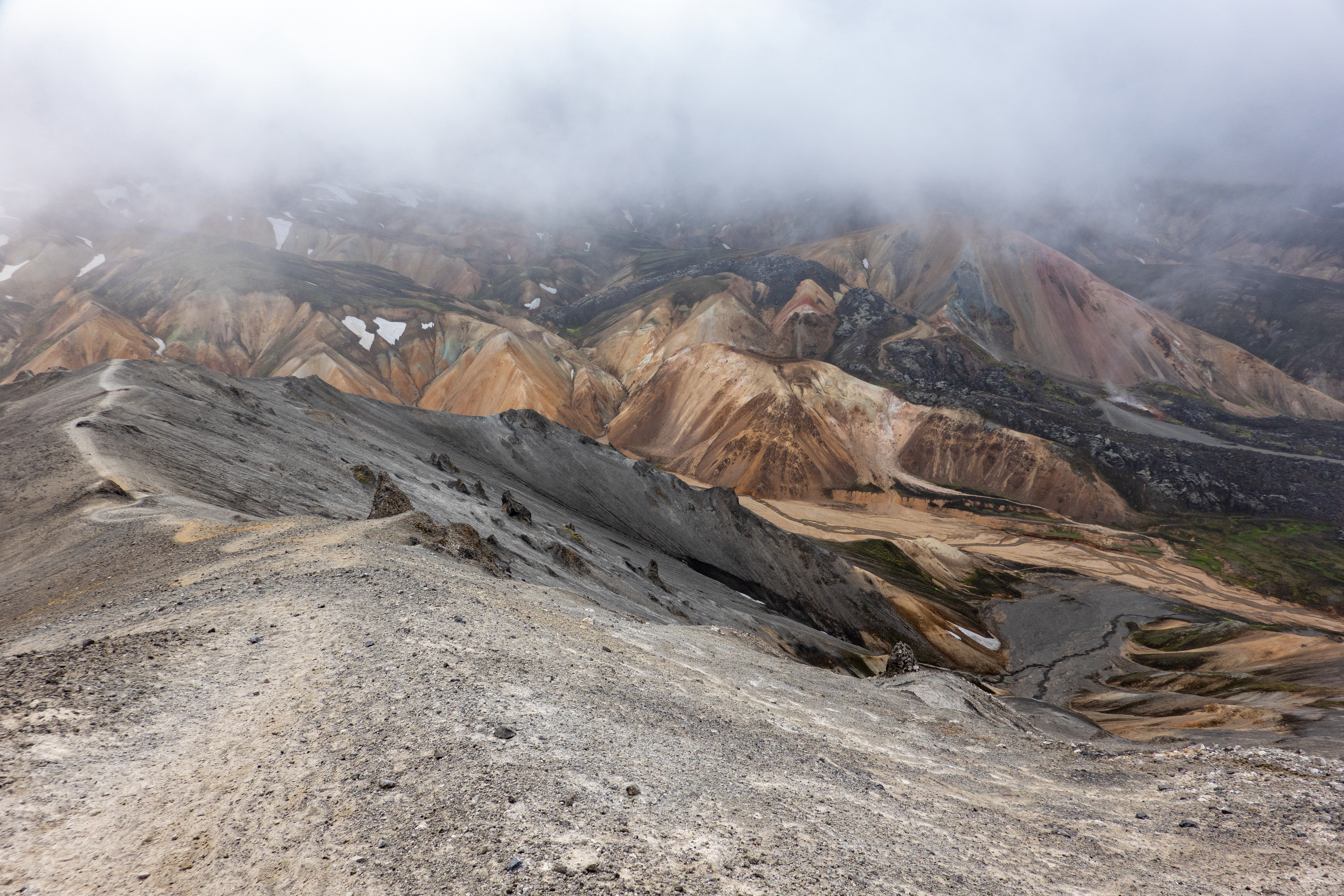 We reached a peak, but then we saw a second peak, and she asked Justin “are we walking all the way up there?!” He responded by saying he didn’t know, as he hadn’t been to Iceland before. But we were going to end up walking all the way up there. The scenery was spectacular, and would’ve been better but for the mist from the constant wind. The guy at lunch with the group told them confidently it wasn’t going to rain in the area this afternoon - this was technically accurate, but we were walking through a cloud, which was basically like being rained on.