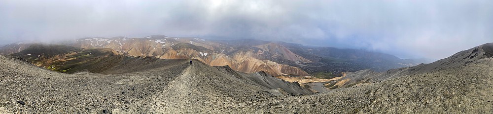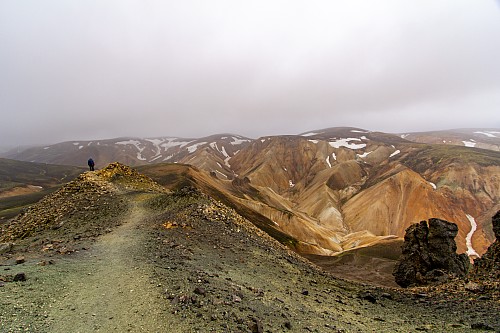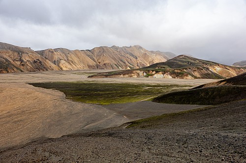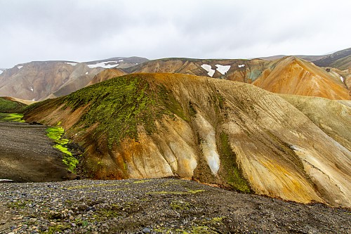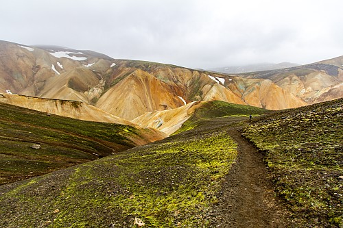 We continued south on Road 208 just a little bit more until we arrived at the parking lot for Landmannalaugar. As the woman at the information desk at lunch had said, we walked over a couple wooden bridges from the parking lot to the main area. At the information desk there, we asked directions to the start of our hike, and also about Road 208 versus Road 225 once we were done. They said it was up to us, as both were nice. This wasn’t especially helpful, and we wondered about the wisdom of crossing rivers in the evening - we at least knew the one way we’d already driven was fine.