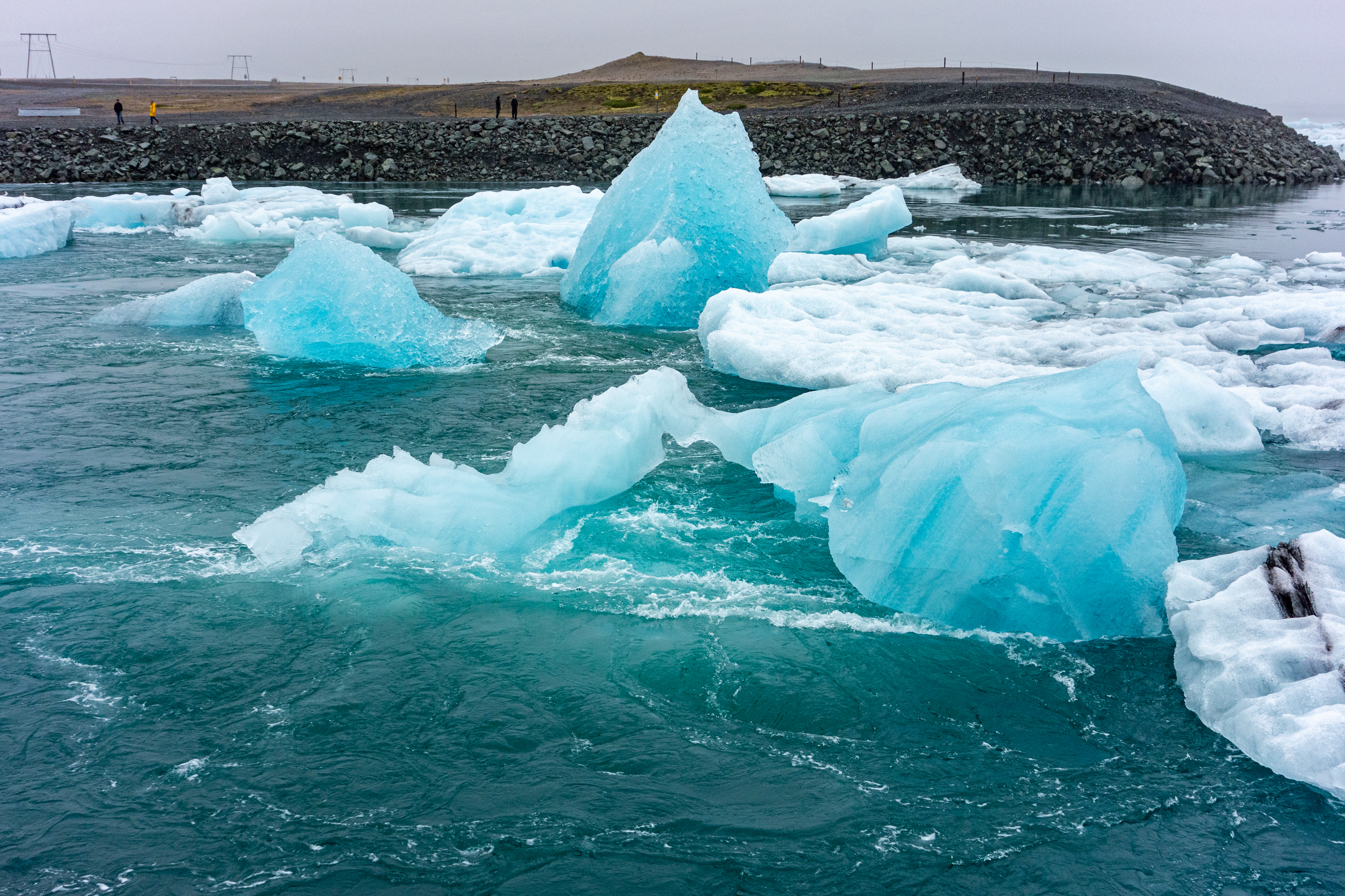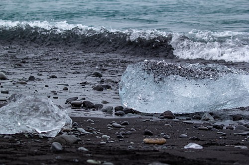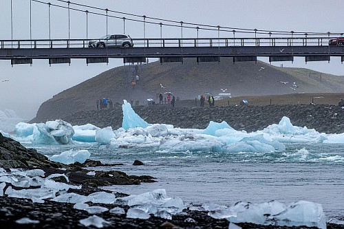 We used the newfound extra time to head back across the bridge and hang out at Diamond Beach. While Diamond Beach is shown on Google Maps as being on the east side of the channel, today the overwhelming majority of the icebergs were on the west side. The reason for all the icebergs on the beach is that they leave the lagoon and head out to sea, but the waves immediately push them back on shore, and on shore they slowly melt into smaller pieces of ice before they completely disappear.