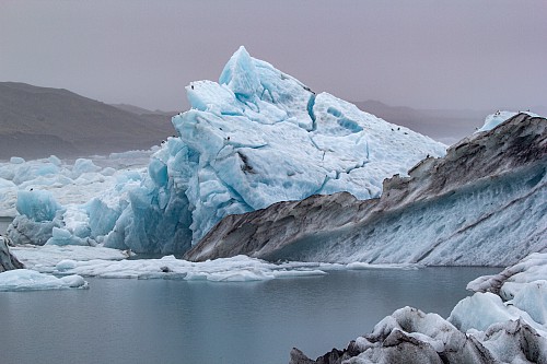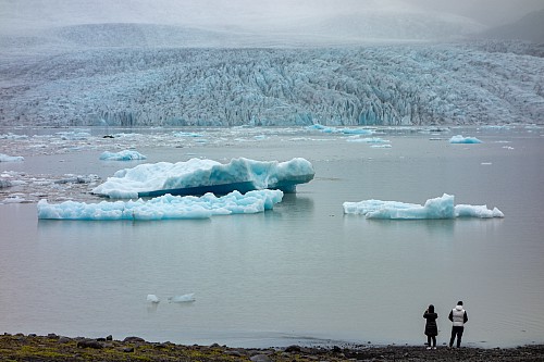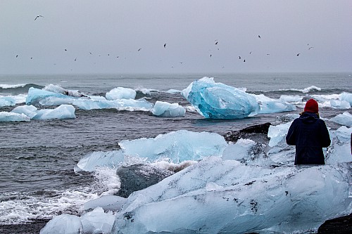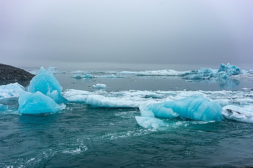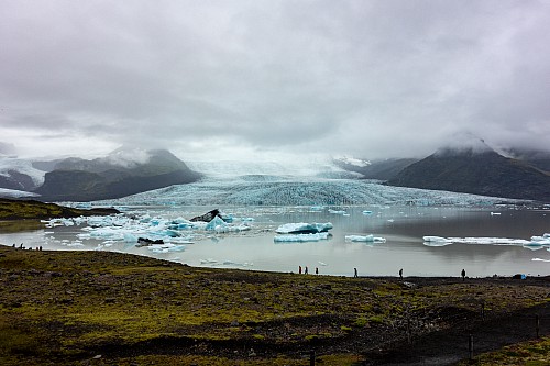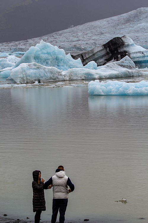 The weather was awful (granted, it could’ve been worse), and we wondered how cold we’d be on our Zodiac tour. We wondered whether we should put a second waterproof layer over the clothes we were already wearing. It turns out we didn’t need to worry about this - our tour was canceled, as there was too much ice in the lagoon for the boats to get around. We weren’t bummed out at all. The only bummer was that because of the fog/mist, we couldn’t get an idea of how big the lagoon was.