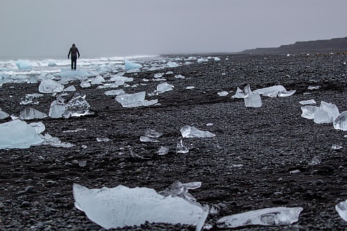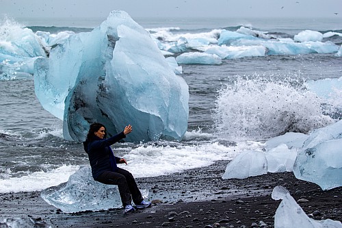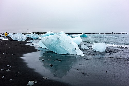 Because of how full the lagoon was with ice, it occurred to us that perhaps Diamond Beach was much more full than usual as well - so I guess this was the Yang to the Yin of us missing our tour. While perhaps a sunny, blue skies day would’ve made for better pictures, we tend to think the ice looks more ice-y in bad weather. It’s a bit like our favorite polar bear photos from Churchill being from the brief time it was snowing. While at Diamond Beach we almost saw the poster child for our soon-to-be Instagram hit account, “Influencers Gone Mild.” A woman was taking a selfie on an iceberg with her back to the icy ocean - we were hoping for a sneaker wave. [We’re bad people, we know.] We hung out at the beach (or, in Crystal’s case, a mix of the beach and the car) until 18:00.