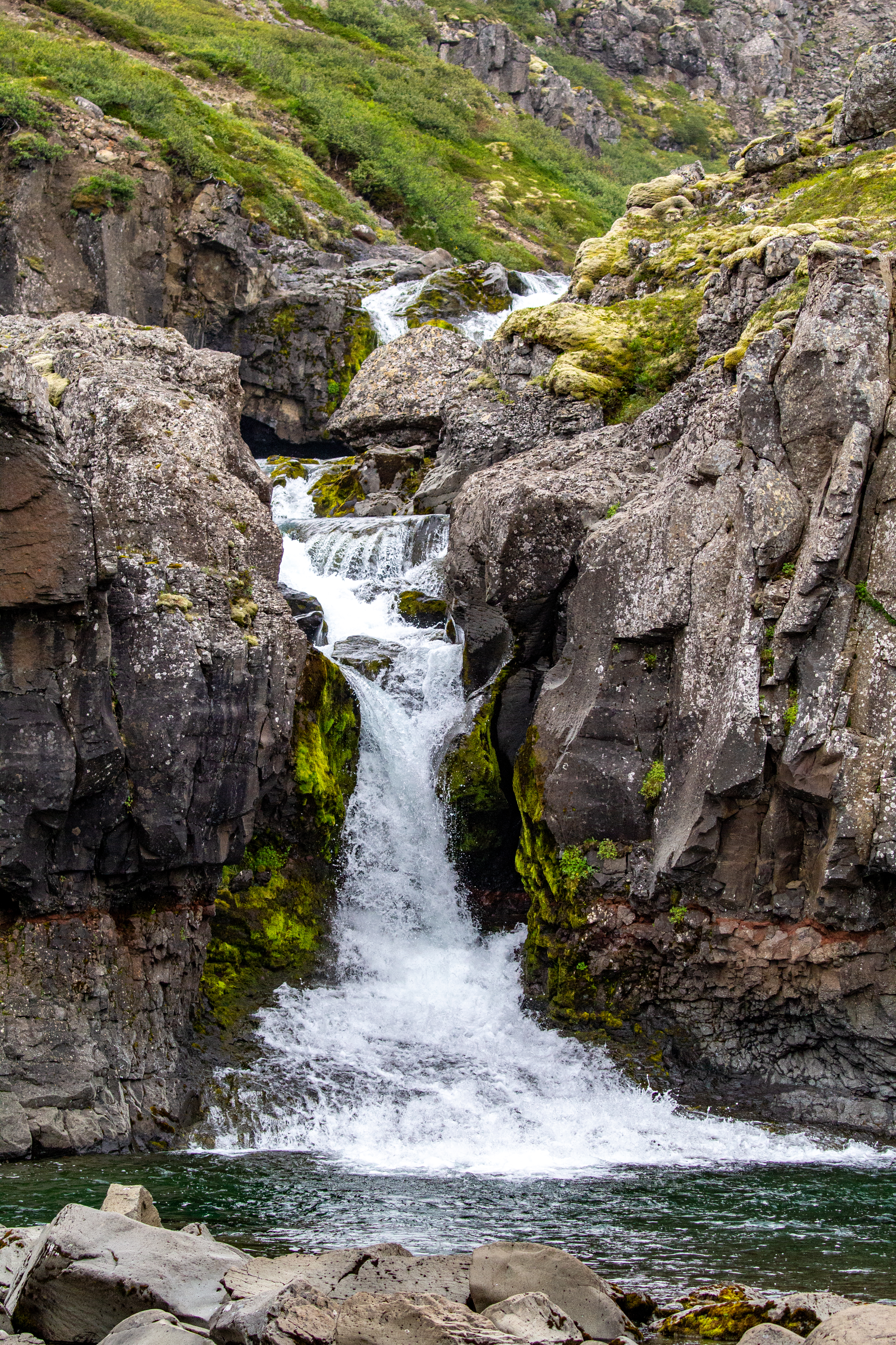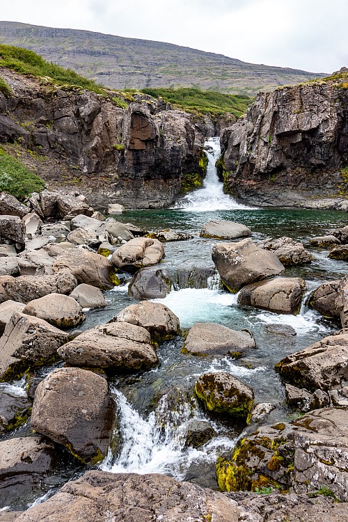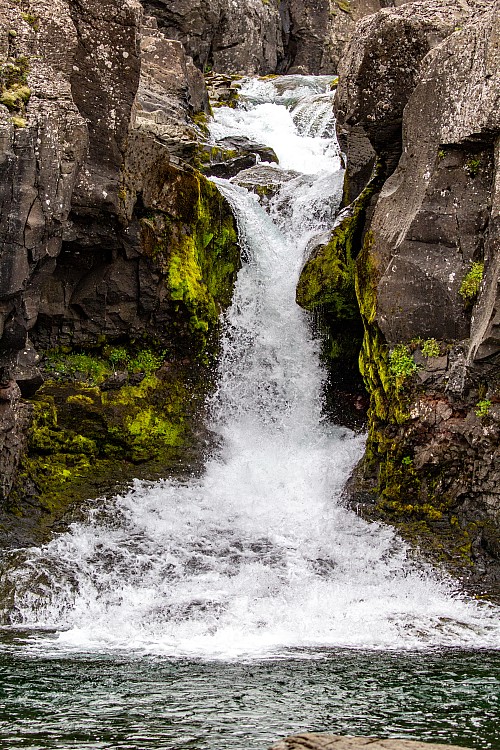 Before we left, we read up on whether a squeaky sounding suspension was a safety issue, and literally everything we read indicated no, so we just convinced ourselves it was fine and to stop worrying about it. We joked it would be like the Little Miss Sunshine van. Gervidalsárfoss was a nice change, as we got out of the car for a bit to check out the waterfall. For Iceland we’d gone quite a long time without stopping to see any waterfalls, since Goðafoss mid-day yesterday. We also hadn’t done much walking today. Two other vehicles came after we stopped - apparently we were setting the trends today.