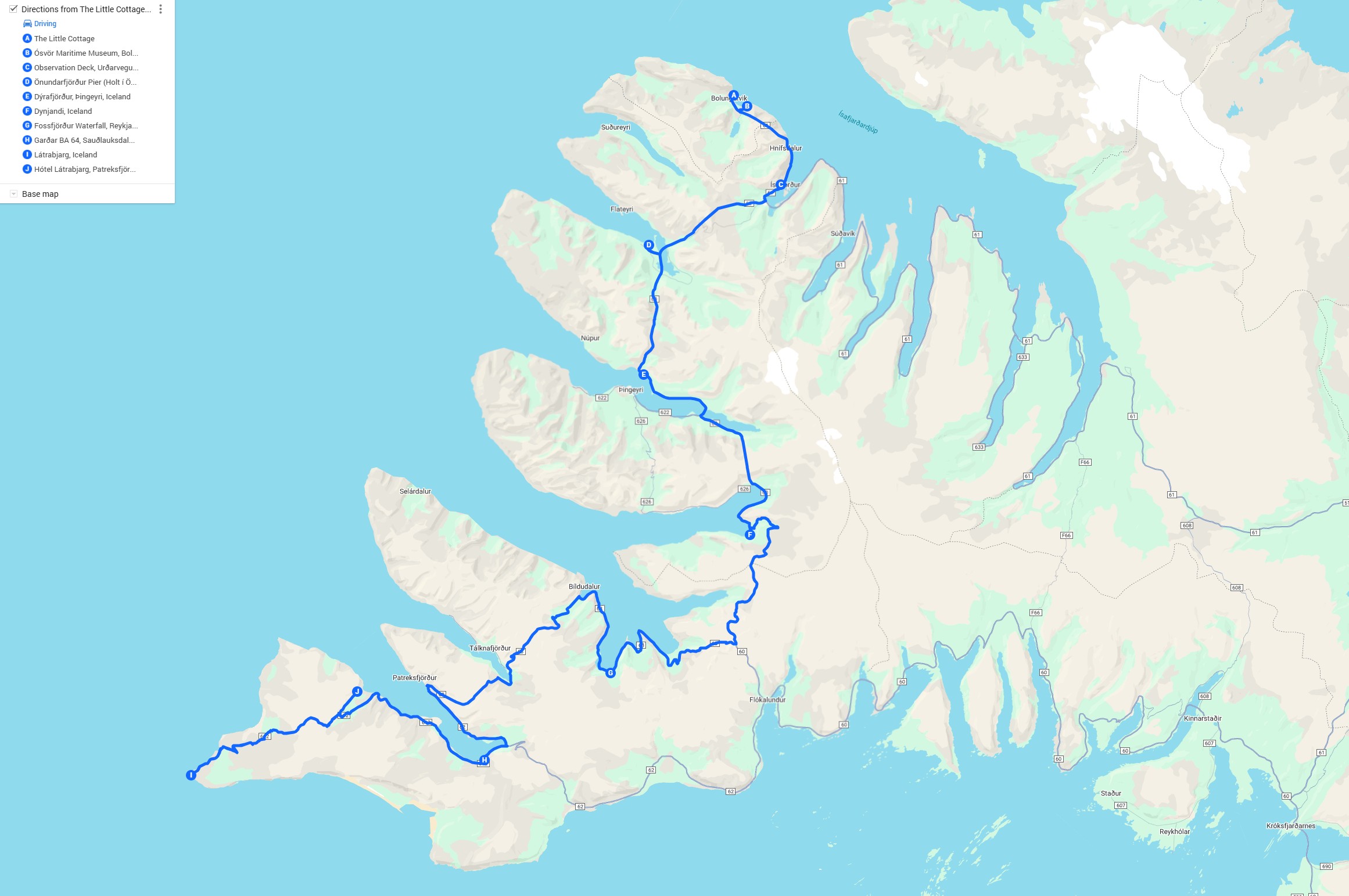 We went back to the room and tried to remember what all we did before we forgot. Today was a bit like the day we went to Stuðlagil Canyon, Dettifoss, and the whale watching tour, in that we didn't see that much stuff, but what we did see was incredible, and worthy of filling up a whole day just on their own. Between just Dynjandi and Látrabjarg, that was enough for the day - everything else was gravy. We got to sleep right around 23:00.