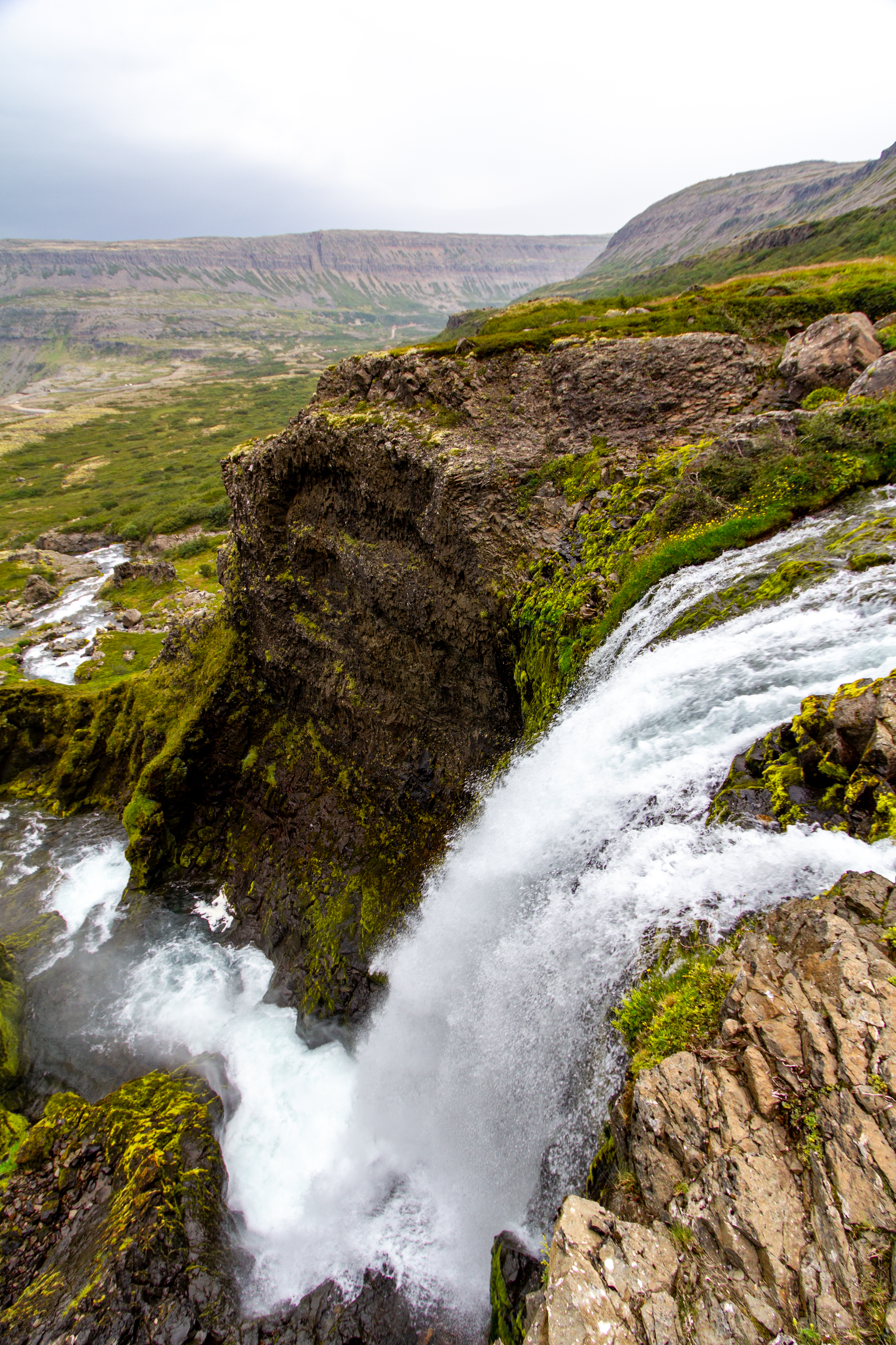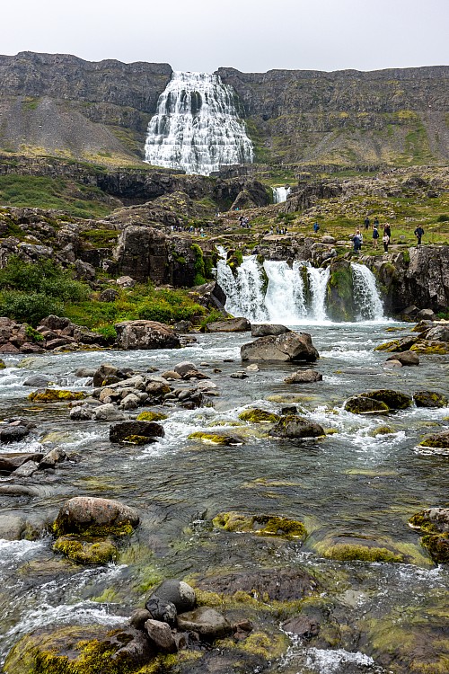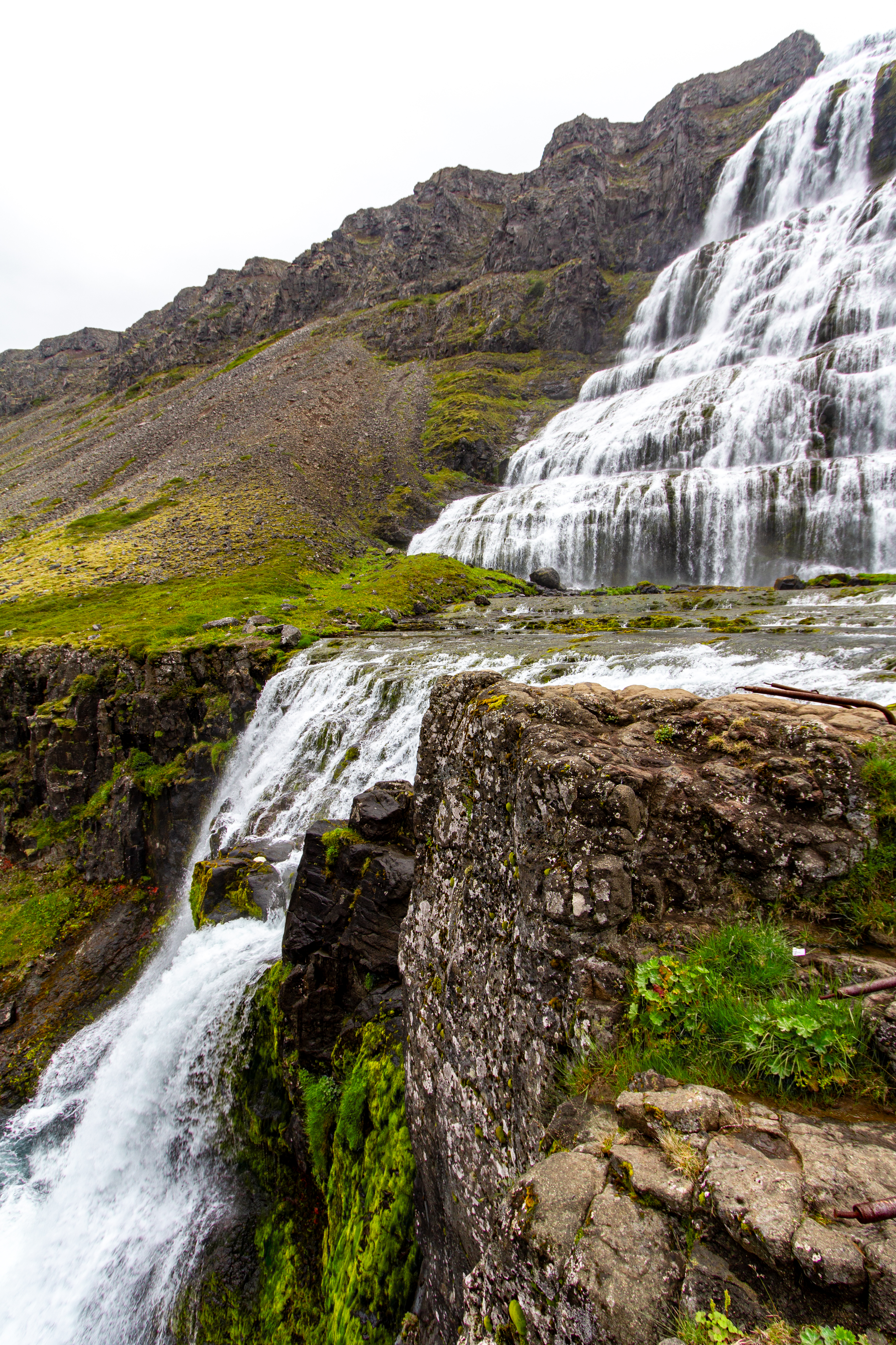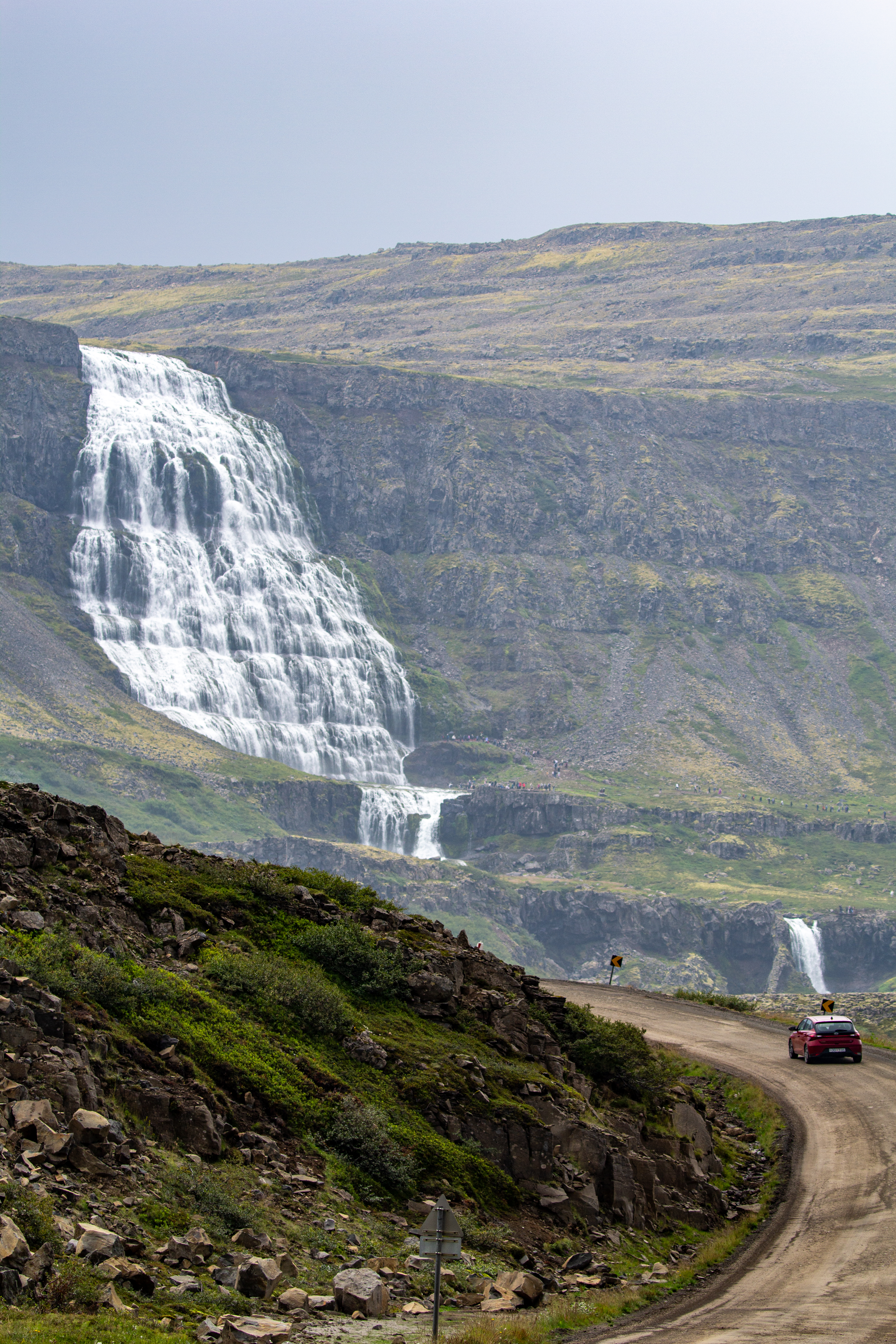 We continued south on Road 60, which connects the north of the Westfjords with the south. Just before we arrived at Dynjandi the road turned to crap. We weren’t sure if they were making the road better for all the buses and just hadn’t finished their work, if there was a landslide that took out the road sometime this year, or something else, but the last kilometer or so of the drive was a mess. We were hoping that Dynjandi was going to be a special treat, as the Westfjords are so much less frequently visited, but ironically this was probably the busiest waterfall we’d been to.