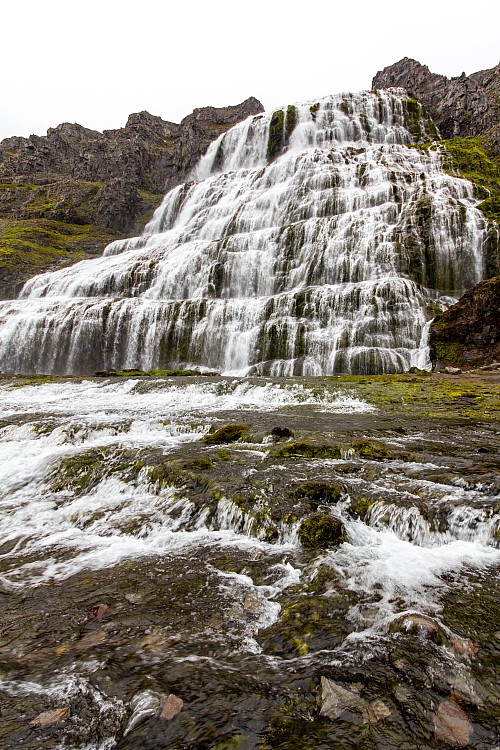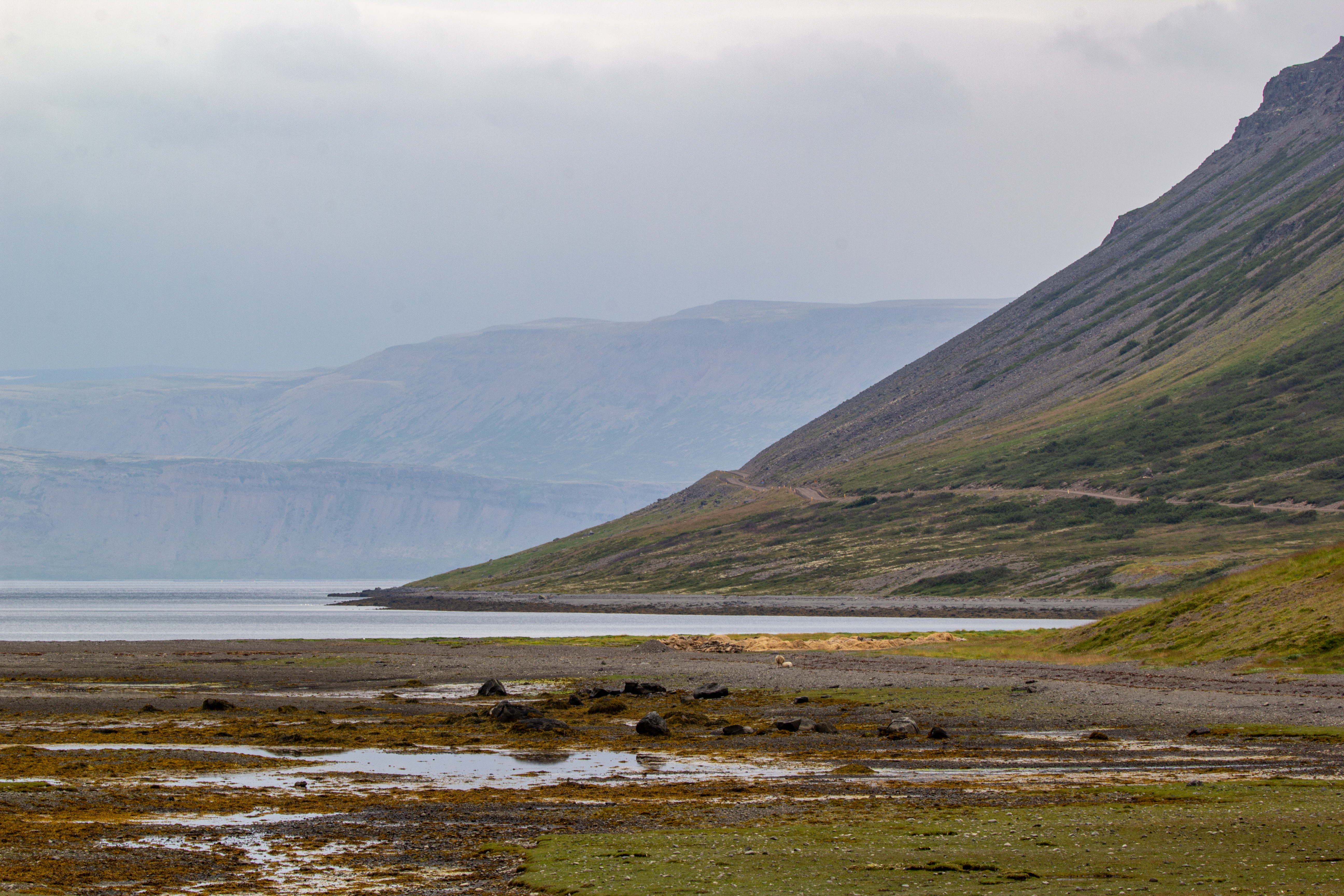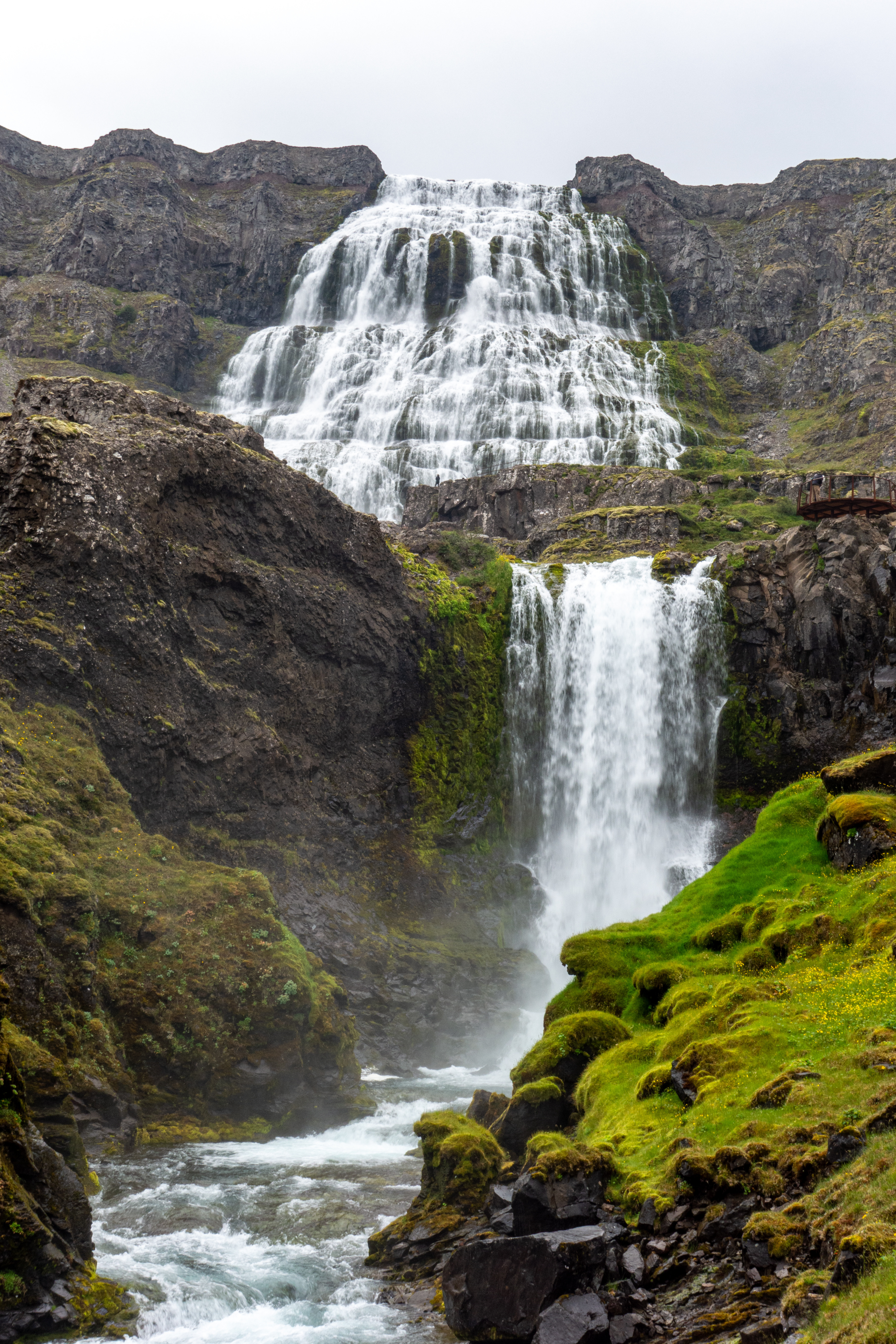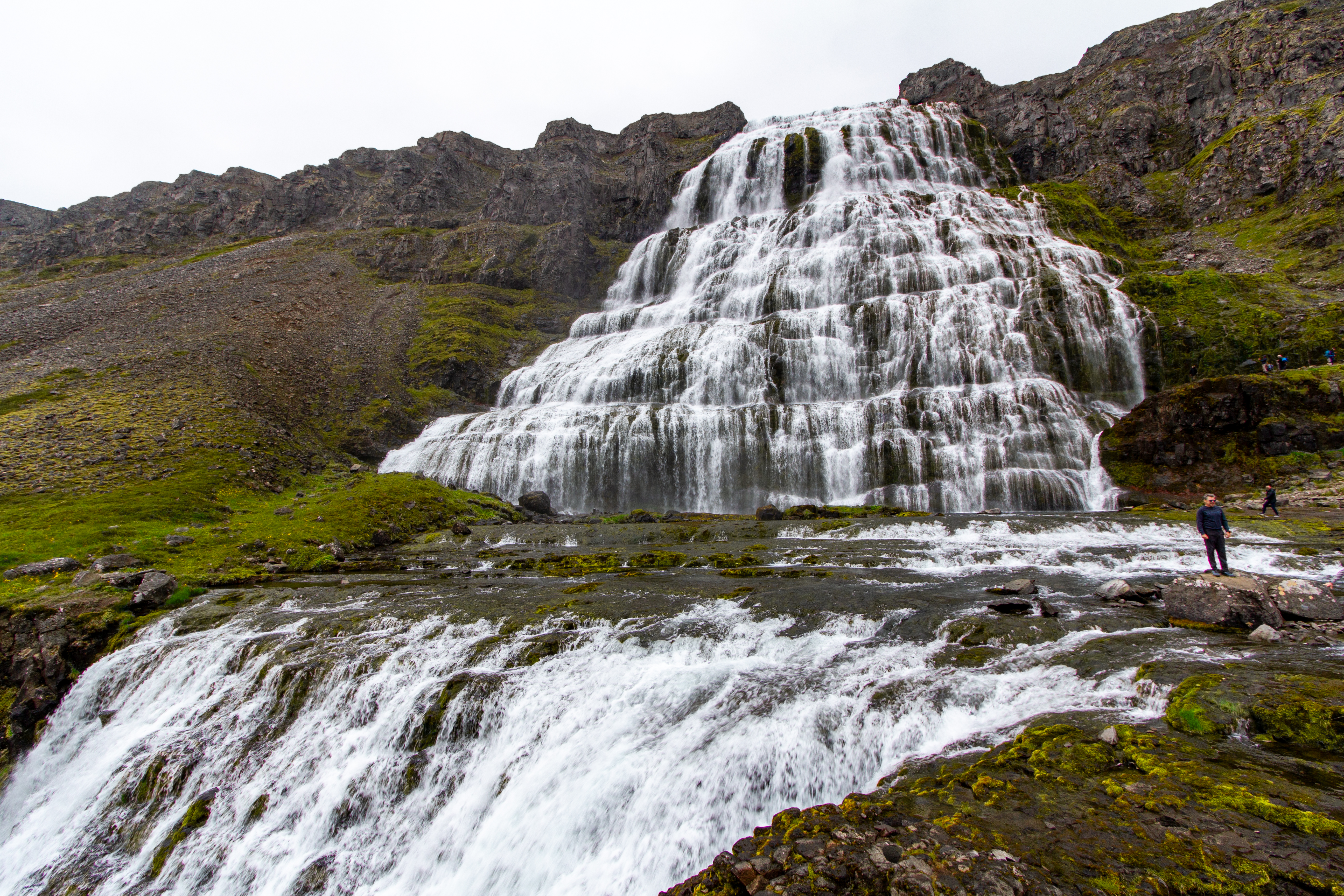 We continued south on Road 60, which connects the north of the Westfjords with the south. Just before we arrived at Dynjandi the road turned to crap. We weren’t sure if they were making the road better for all the buses and just hadn’t finished their work, if there was a landslide that took out the road sometime this year, or something else, but the last kilometer or so of the drive was a mess. We were hoping that Dynjandi was going to be a special treat, as the Westfjords are so much less frequently visited, but ironically this was probably the busiest waterfall we’d been to.