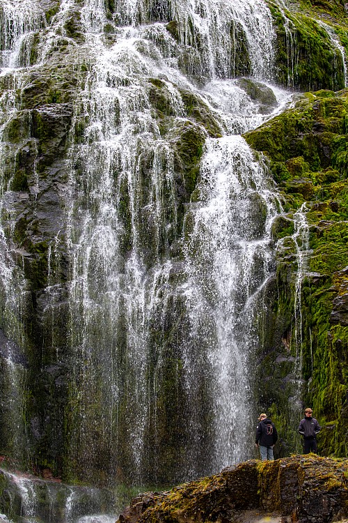 We needed to use the facilities, but the restrooms had lines of 20 people, as there were tons of buses getting ready to leave. At least they were getting ready to leave, not just arriving. While we were walking up the paths to the waterfall, there were waves of people coming down, some in a big hurry. We’re guessing they were worried about missing their bus back to the cruise ship. By the time we got to the top, it was maybe 15-20% of the people that were there when we arrived.