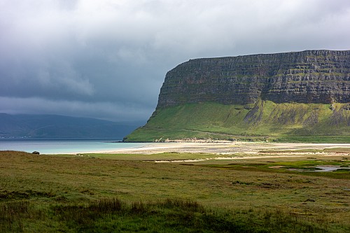 We arrived at the hotel around 15:30, so hours before we arrived at any of our other hotels. While chit-chatting with the owner at check-in, we found out he has a place in Gran Canaria. We were starting to think that perhaps Iceland and the Canaries had many more people going back and forth between them than we originally thought. The owner told us what was on the menu for dinner, and since there wasn’t much of anything close by, we figured we should just do that. So now we had an alarm of sorts for 19:00. Our room had a great view of a beach and a giant cliff - this was the view out our window. Justin went outside (it had stopped raining) to get photos of the beach and cliff, but the Arctic Terns were giving him a really hard time.