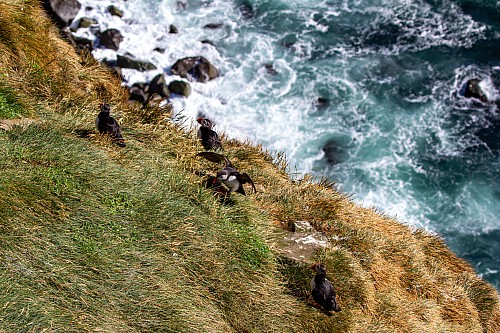 Crystal managed about 30 minutes, which was enough time with the birds for her, especially because there were more of other birds relative to puffins. She headed back to the car for a bit. Justin walked down the rim for quite a while, taking in different views and looking for puffins and other things right near the rim.