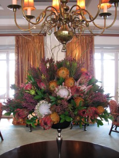 The staff at the hotel was excellent. There were a ton of people waiting to greet us when we got in – more of them than there were of us. While waiting in the library, people were coming up all the time to check in on us and see if there was anything they could do. The lobby was also very nice, with a huge Proteaceae arrangement in the middle of the room. We got our day rooms, and just after cleaning up found out that our regular rooms were ready. We put our stuff down, grabbed some items for the afternoon, and headed down to lunch. We had to rush through lunch (which was very good) so we could take off at 1pm for our afternoon excursion.