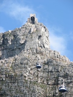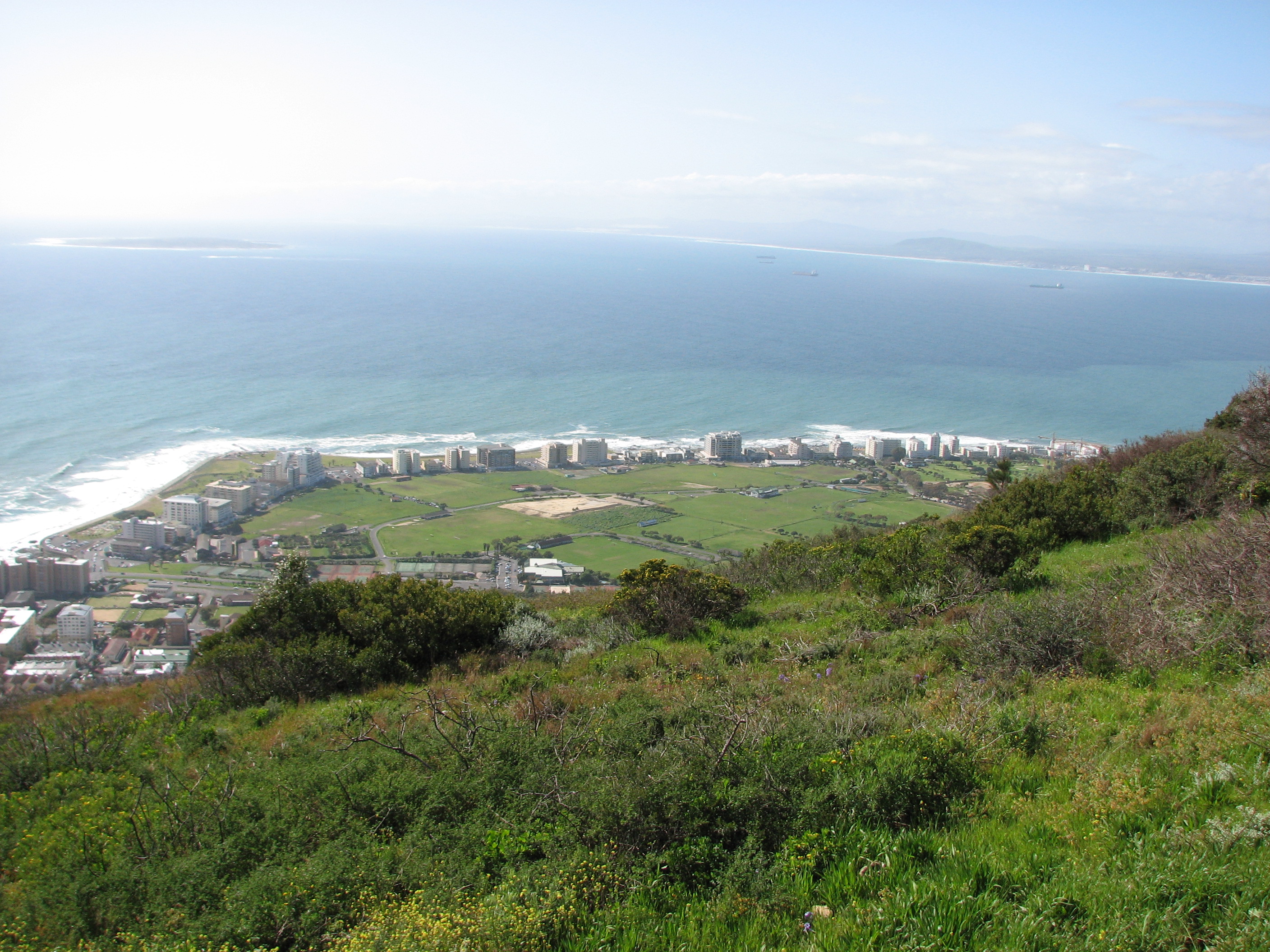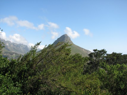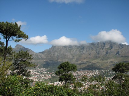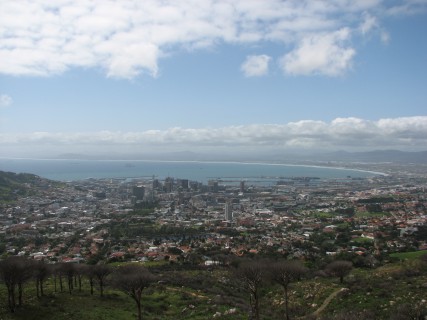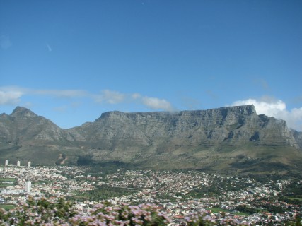 We came back down and drove over to Signal Hill, which sits atop the Lion's Rump. Supposedly the peak they call Lion's Head and the hill they call Lion's Rump actually look like a lion – we didn't see it. But, the view of Table Mountain was outstanding, and it was much warmer and clearer. At one point it was basically clear. There were also great views of the shoreline, including Green Point where they are building a new soccer (we'll call it soccer so as to not be confusing, but every country except the US calls it football) stadium for the 2010 World Cup. Since the World Cup will be held in the middle of the winter, when Cape Town is cold and windy, the new stadium will have a roof.