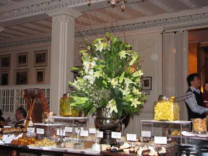 From Signal Hill, we drove to the historic Mount Nelson Hotel, known locally as "The Nellie." Justin's mom had always wanted to go to afternoon Tea at the Nellie, and this was the best afternoon for doing so, since the other days we would be out at different excursions fairly far away from the city itself. The presentation was very nice, and we got our fill of food (mostly desserts), plus tea itself. Justin needed the tea, since he was barely staying awake. He had stayed to a strict regimen on the plane, eating and sleeping at only the appropriate times for South Africa. Because of this, he had slept much less than everyone else, and sitting around in a comfy chair with a full stomach was making it hard for him to stay awake.