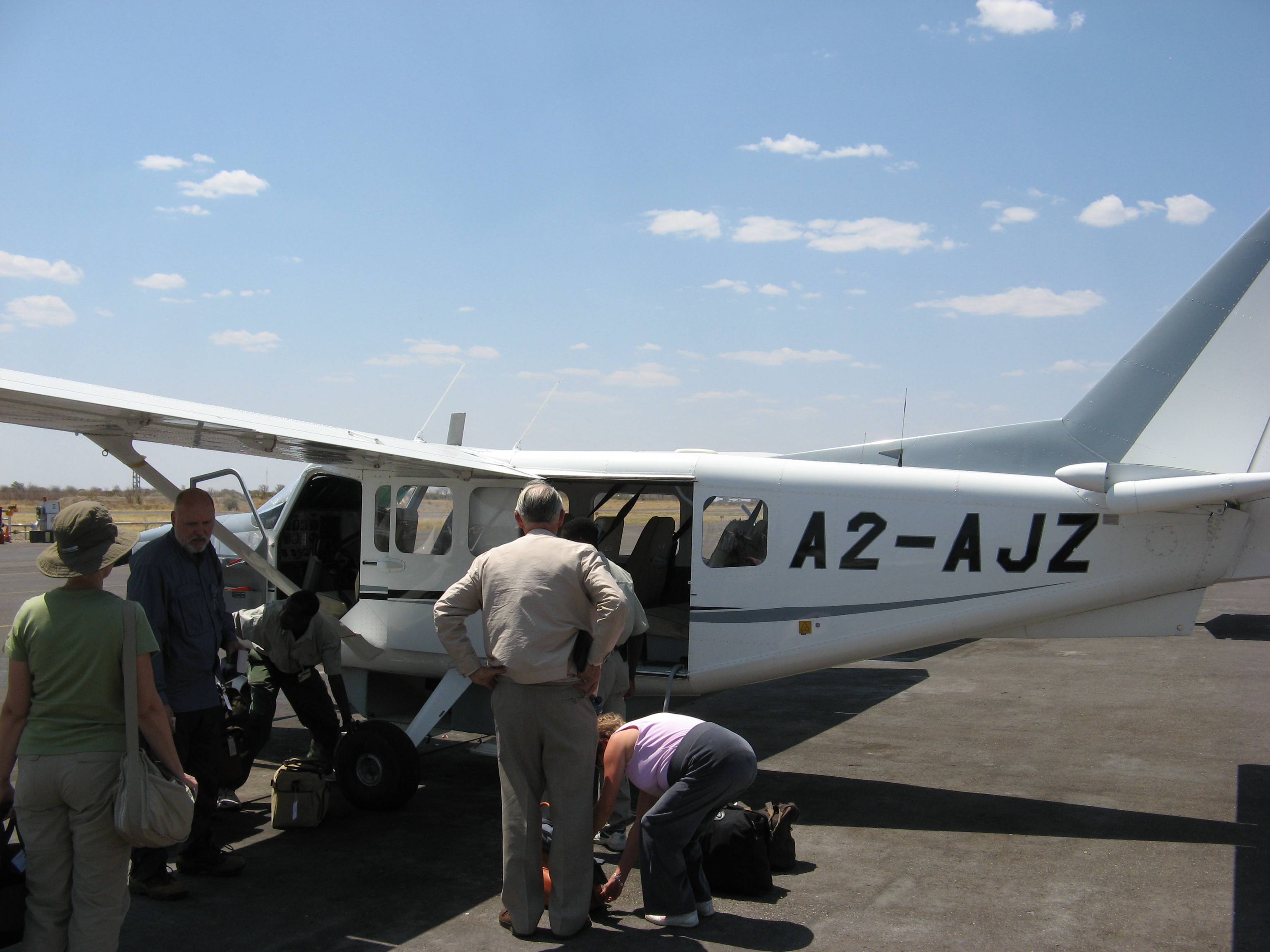 We woke up super early, around 3:30 am . We left the hotel around 4am for our 6am flight. We got through security just fine, and the plane was there waiting for us, but yet we still left late. Someone decided to check in but not get on the plane, so we left 20 minutes late. Crystal got a bit of sleep on the way to Johannesburg . Justin and his parents watched the nice sunrise. We did not have a very long layover in Johannesburg, so we rushed through the airport, worried about making our flight to Maun. It was not that easy, because we had no idea where we were going and the airport was under construction to expand in time for the 2010 World Cup.