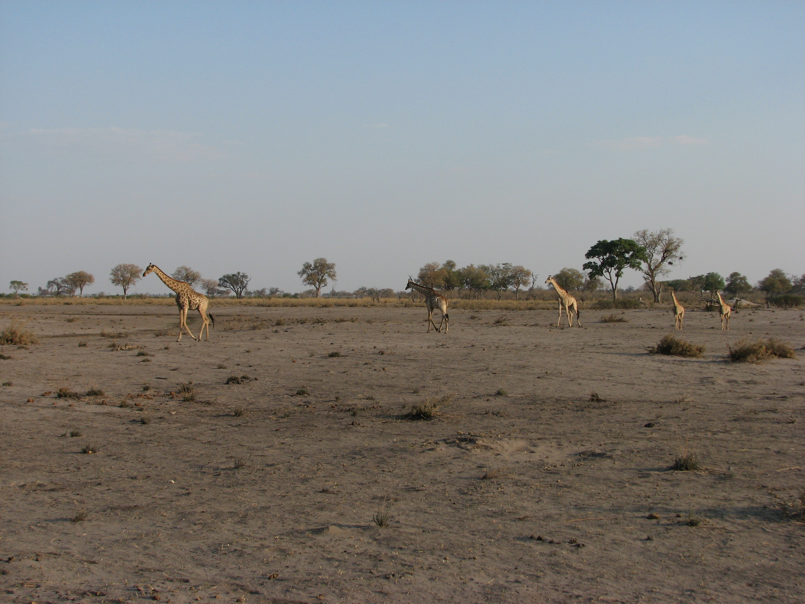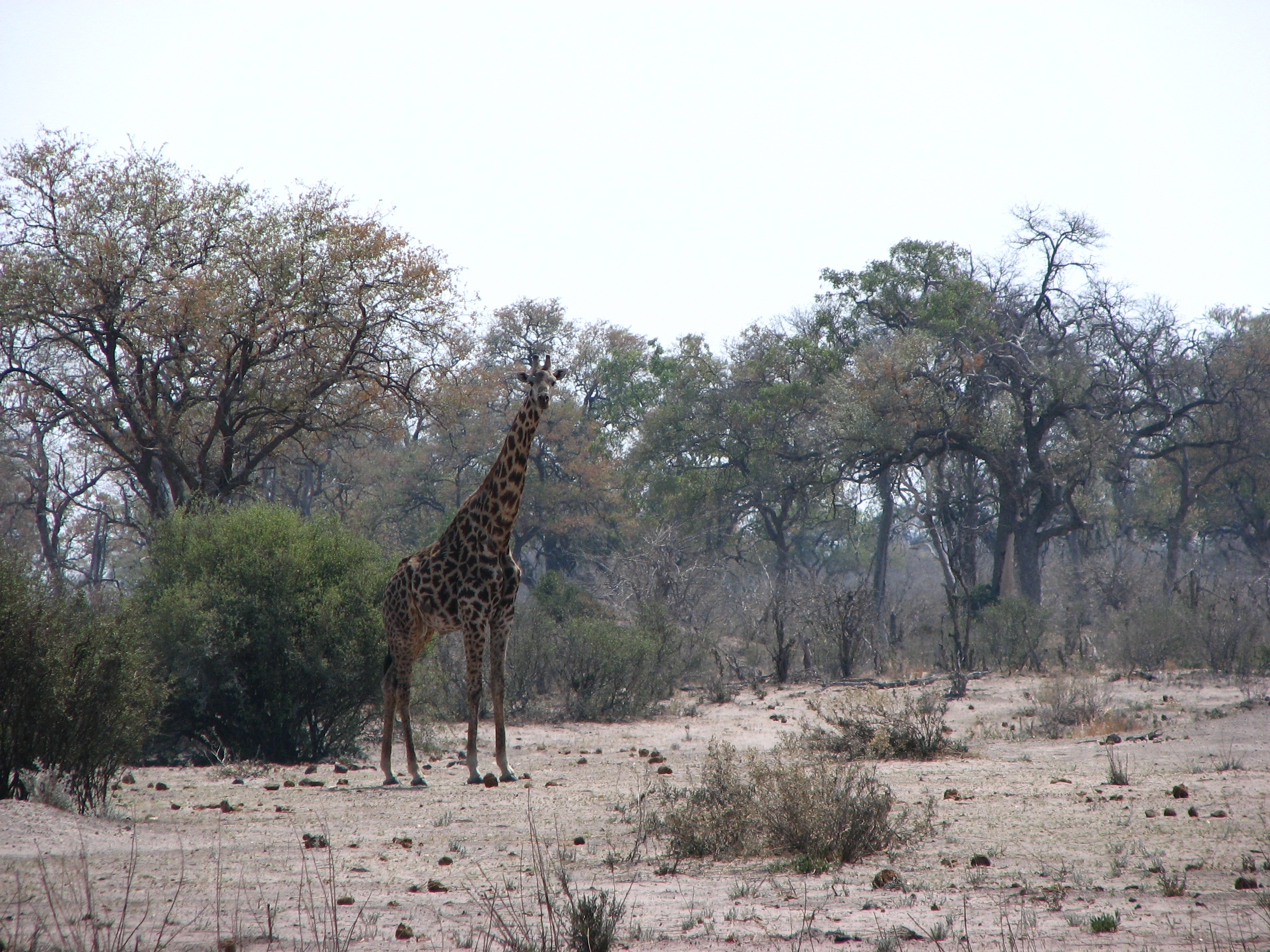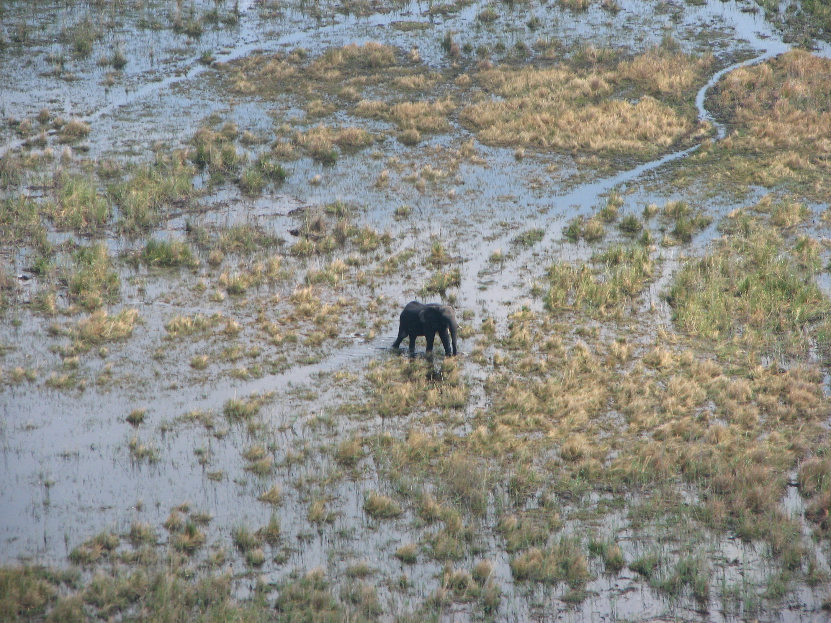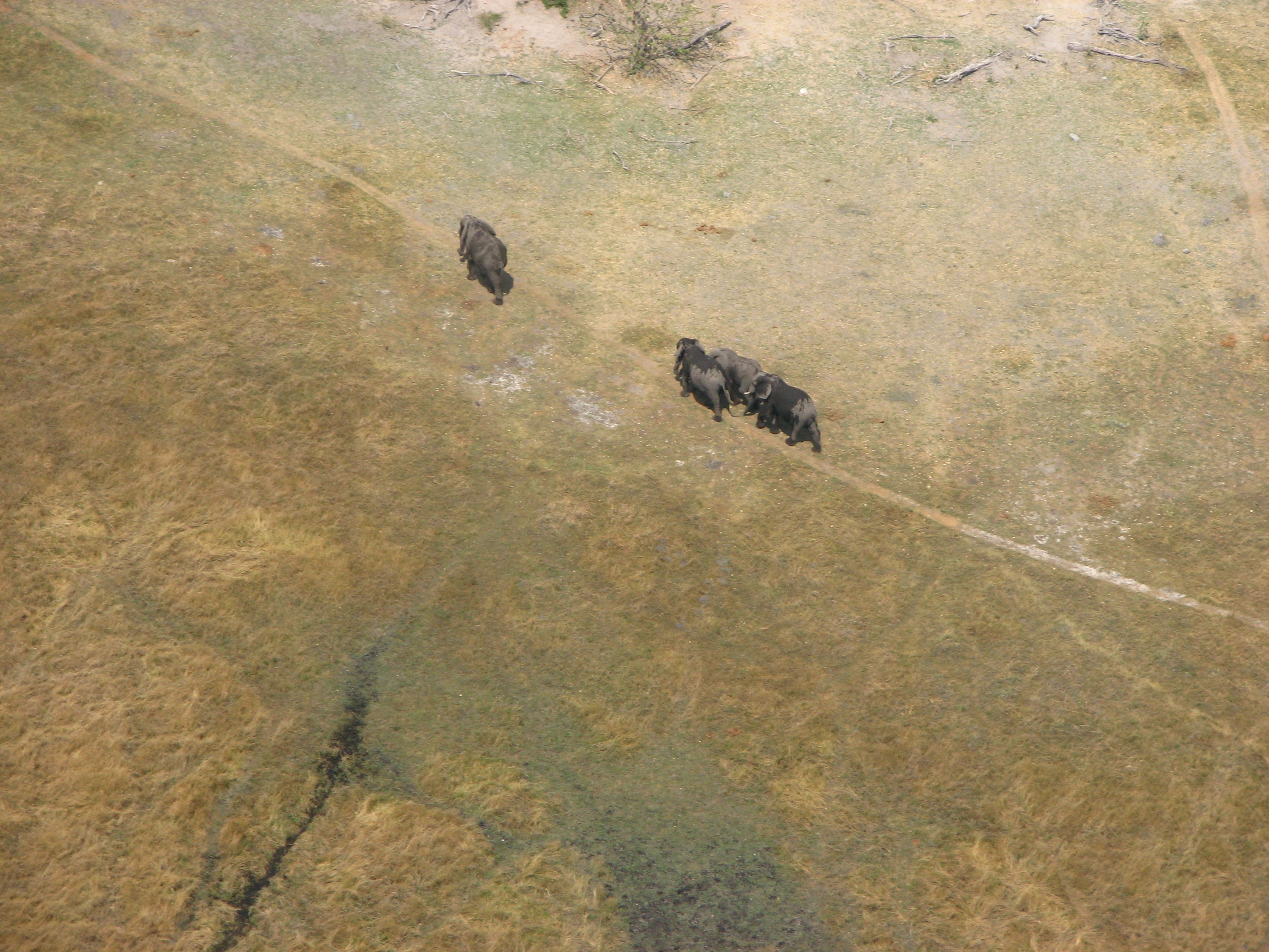 The flight was less than an hour, but was pretty turbulent because of the heat. Both Crystal and Justin's mom got airsick, although Crystal was a trooper and actually managed to get a photo of the landing strip with one hand while holding the airsick bag with the other. On the flight we got some views of the Okavango Delta area, but it was mostly dried Mopane forest. September is towards the end of the dry season in Botswana, which has rain from October (or November) through April, and is dry the rest of the time. Shortly after takeoff Justin saw some elephants and giraffes, but there was nothing else in sight until shortly before landing, when we saw elephants, and Justin's parents saw hippos as well.