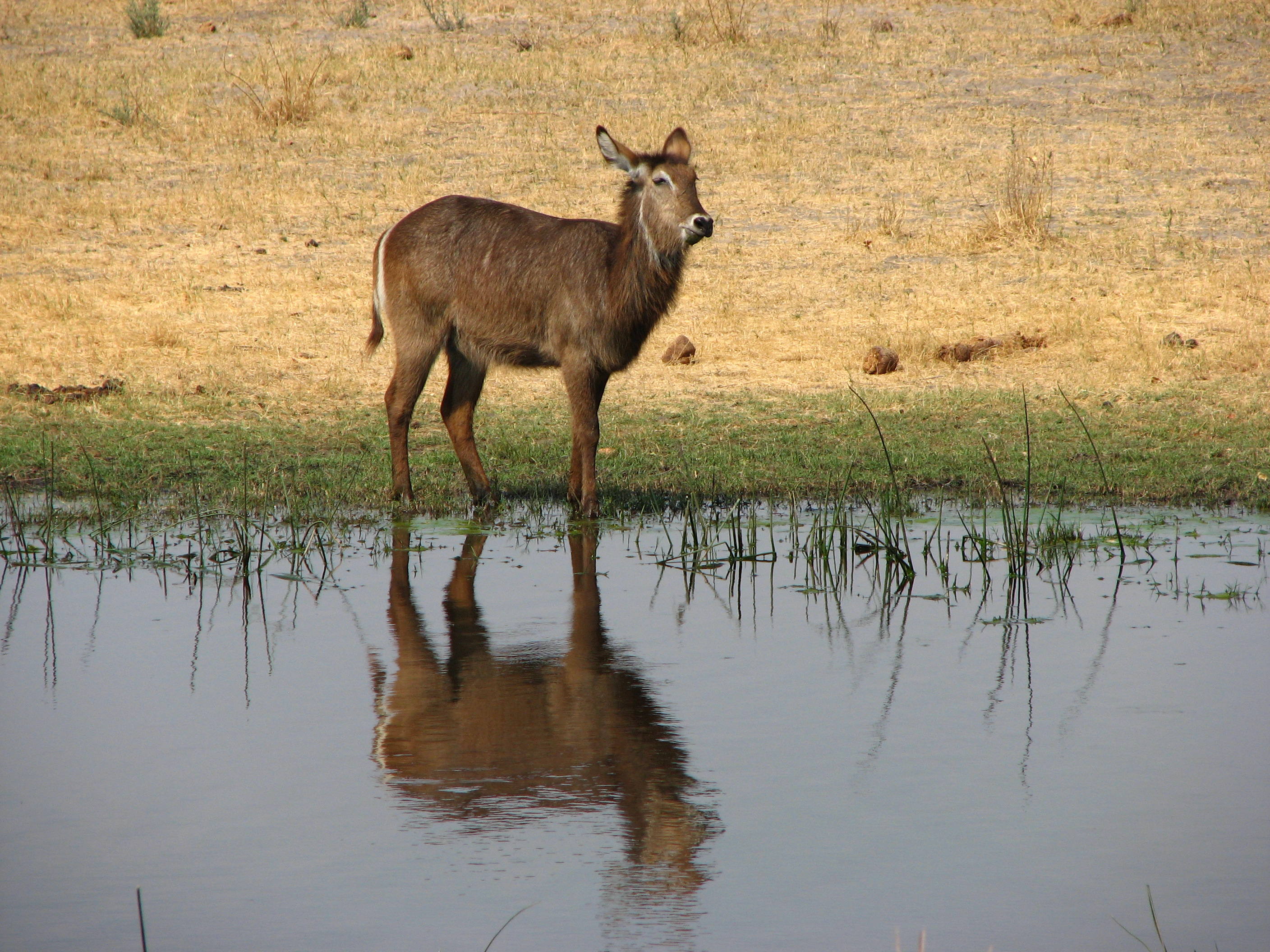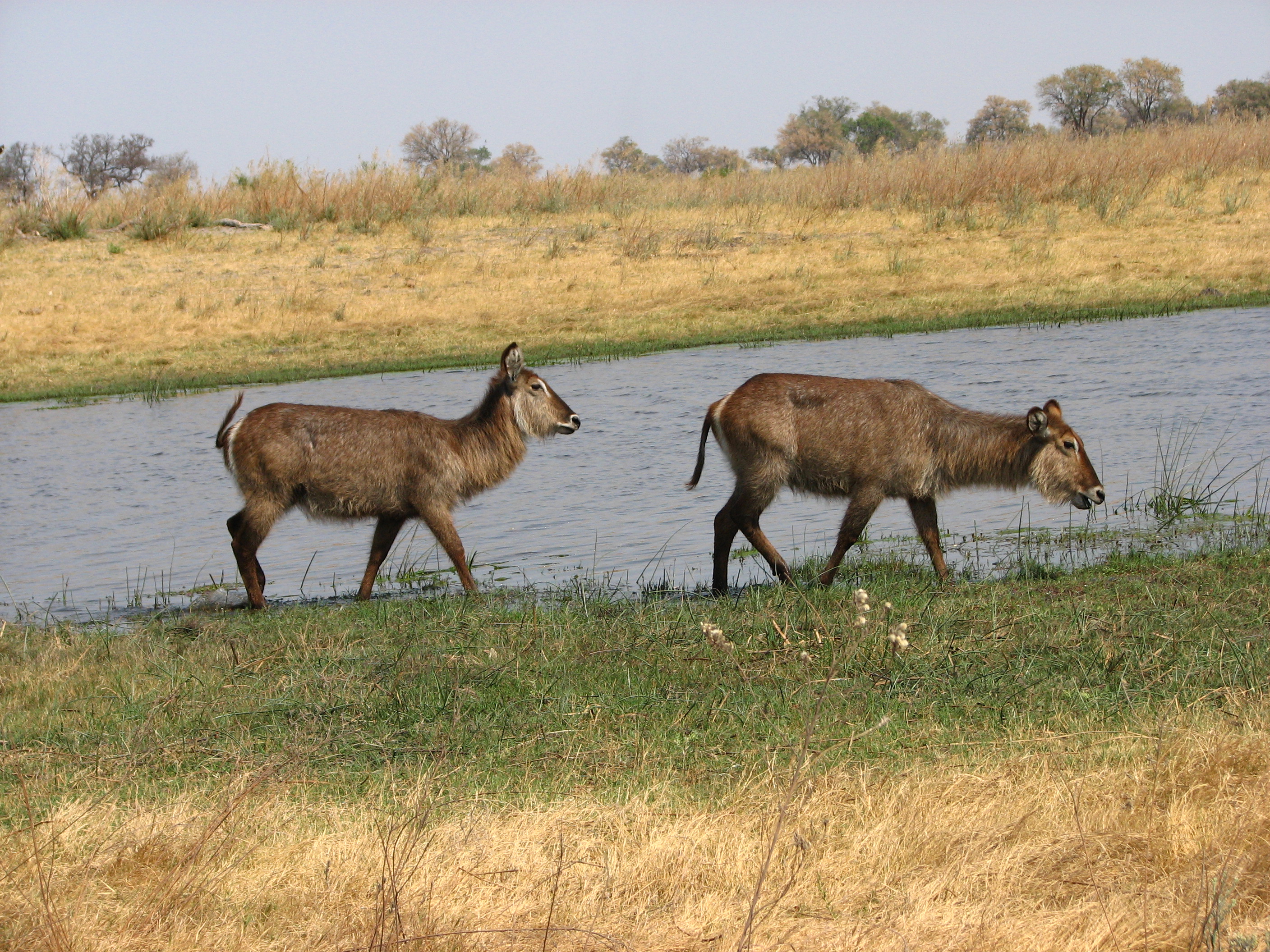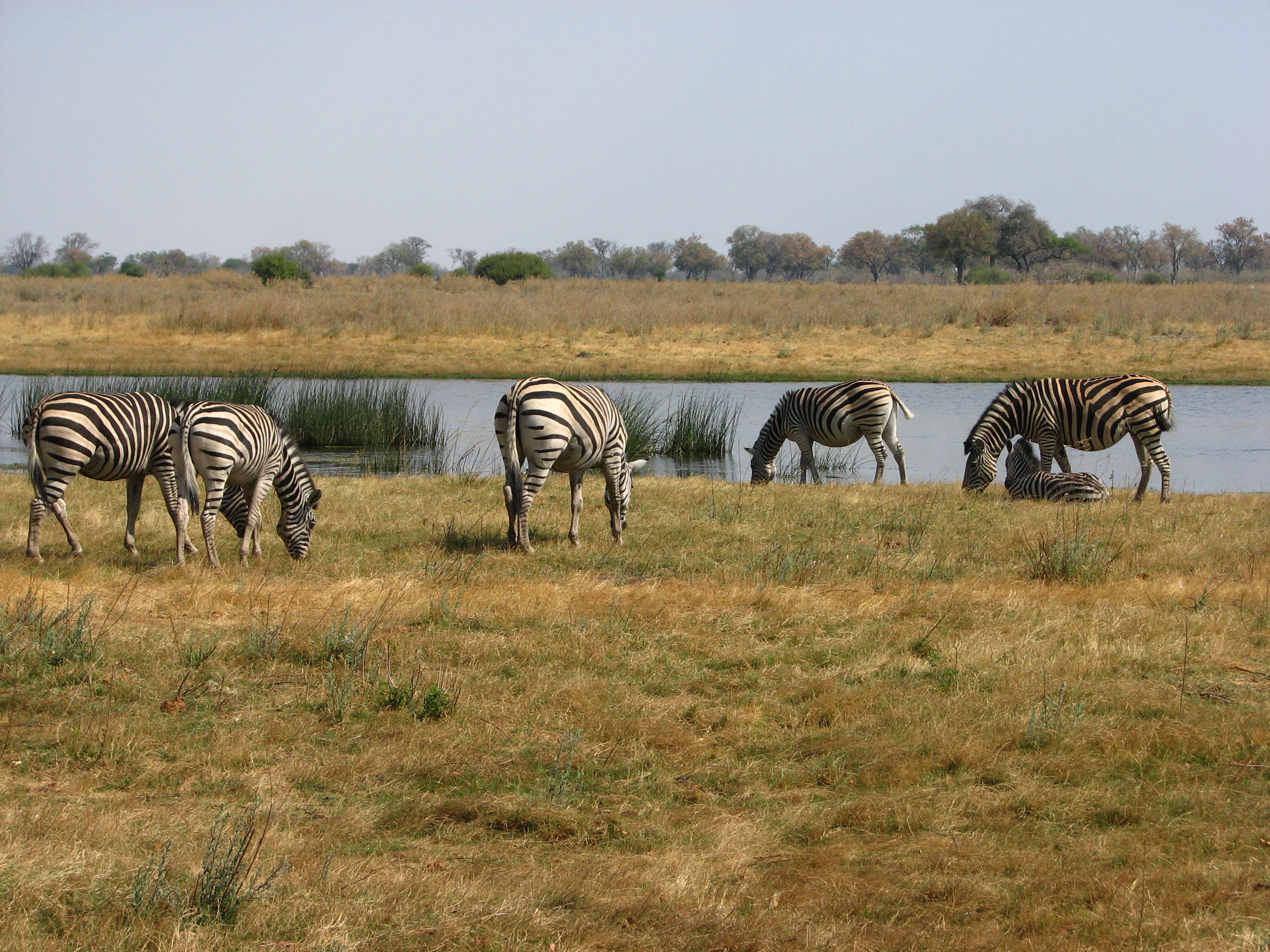 Back at the camp, we got cleaned up, and then went to the main area for dinner. We had drinks while we got to know some of the people. Mike and Larry from San Diego, for example, had just come from Xigera and Chitabe, the next two camps we were going to, and had started at Victoria Falls, where we are going after leaving Botswana, in fact, almost our whole trip is the reverse of theirs. Dinner was at a large table right near the Selinda spillway, and we had to speak over the frogs, the insects, and the roaring hippos. After dinner, we sat around the campfire for a bit, then went back to finally end the day. Even if we had to go back after today, our safari experience would be a success.