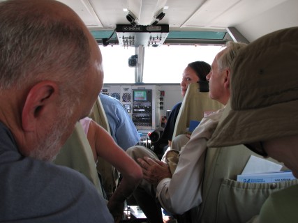 After clearing customs, we went right back into the terminal, this time for departure. We knew the plane would be small, but were not quite expecting something so small. There were only six passengers in the plane, and Crystal got to sit in the front so that, according to the pilot, the plane would not tip over. She thought about holding onto the steering wheel, but instead just took pictures of the instruments and out the front of the plane.