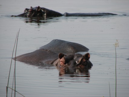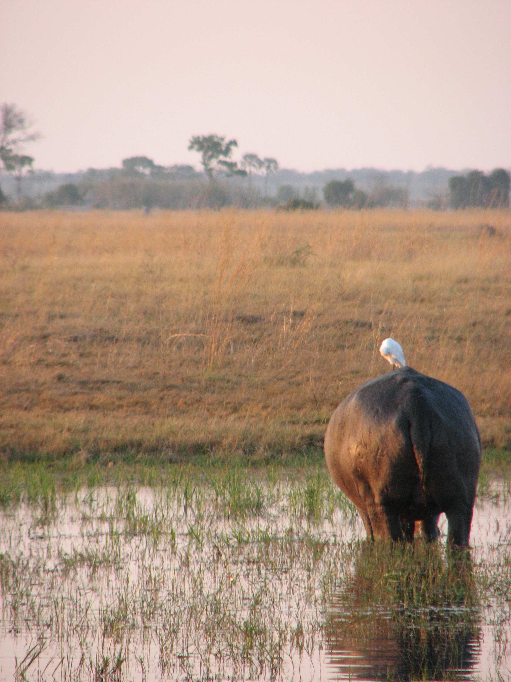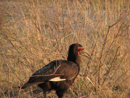 First we saw a bunch of hippos, some with birds hanging around on their back. BB told us that there is a bit of a symbiotic relationship between the hippos and the birds – the hippos kick up insects when they walk, and the birds eat the insects. We saw two large ground hornbills – BB told us that they were the largest hornbills in the world.