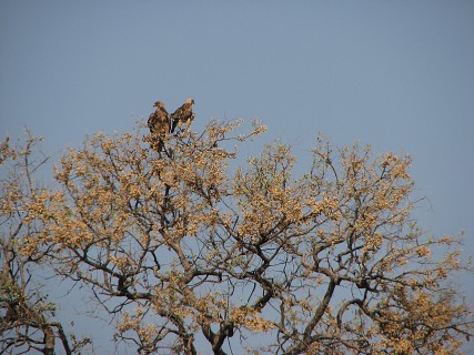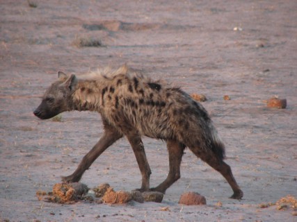 For the afternoon drive, Rick and Beverly were both able to make it, which was good. Unfortunately, the drive itself was not as eventful as the first two game drives, or even the drive we had into camp the day before. We started off by searching for the cheetah that we had seen in the morning, but to no avail. Then we drove over to where we had seen the elephant carcass in the morning – curious whether other animals had congregated around it, but again there was nothing going on. We did happen to see three hyena playing, just like dogs, with one running around trying to get the other two to chase it. Other highlights from the afternoon drive included: