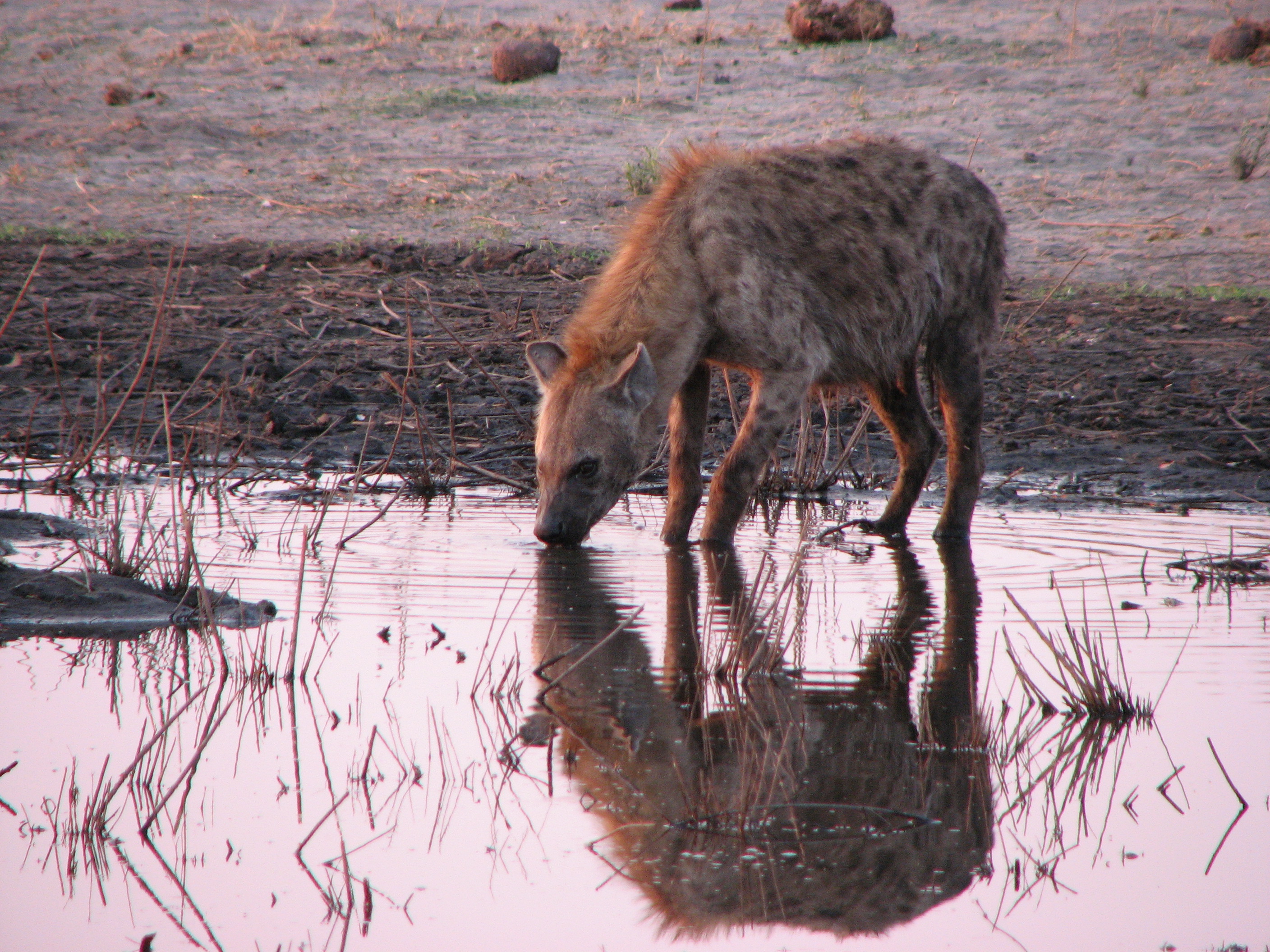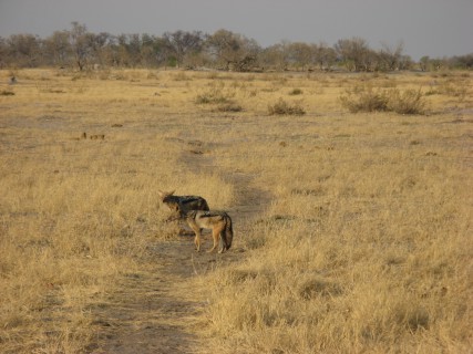 We woke up at 5am again. Beverly was not feeling well again, so she did not join us. The animals were apparently hung over from a long weekend – nothing much seemed to be out (at least comparatively). We saw some more elephants, including several mom and baby pairs, one of which was nursing. We saw several jackals, which actually were jackals this time around. We saw one of the same hyenas we had seen a couple of days earlier, the one who had fed on the dead elephant – they still looked fat.