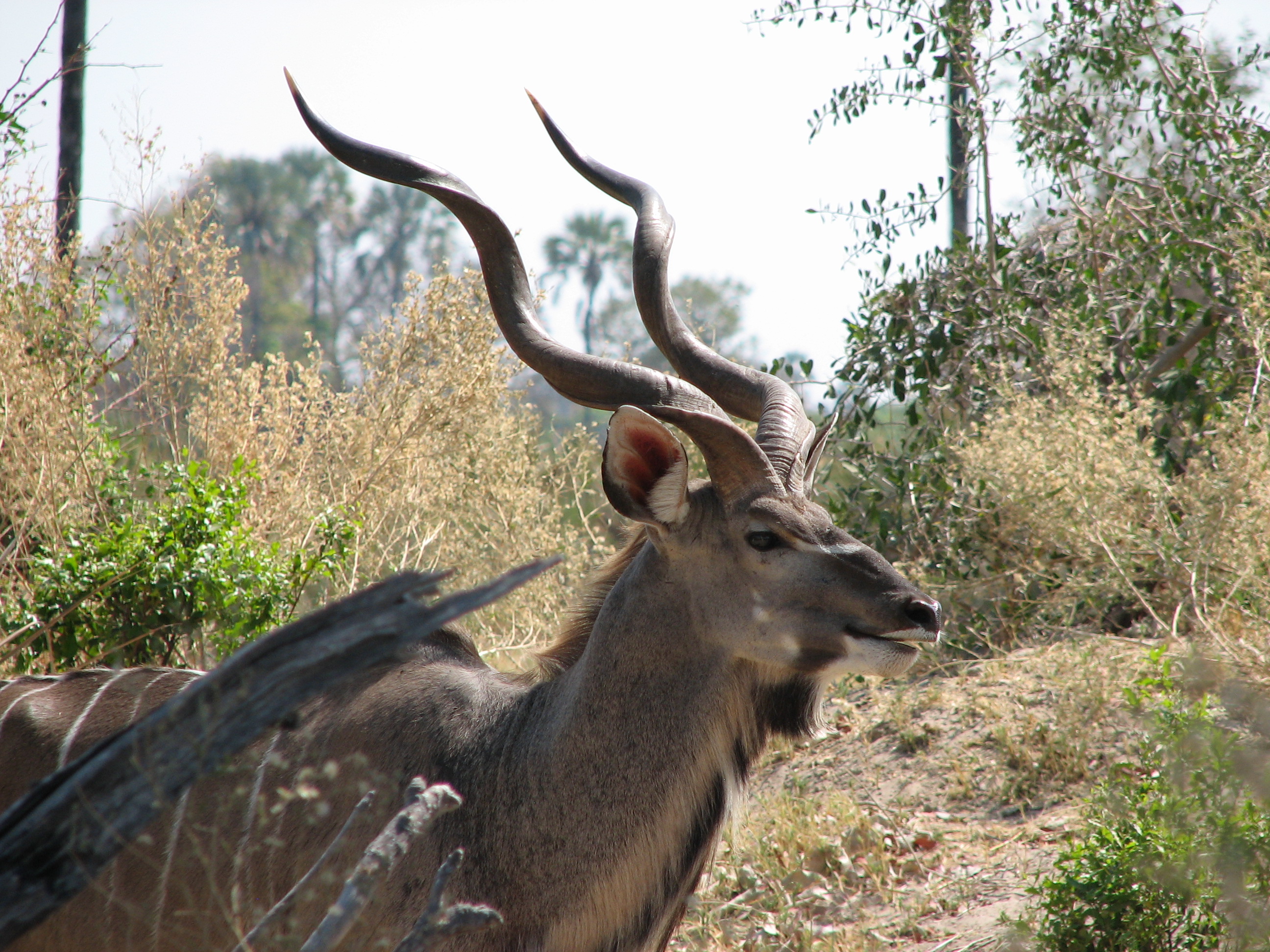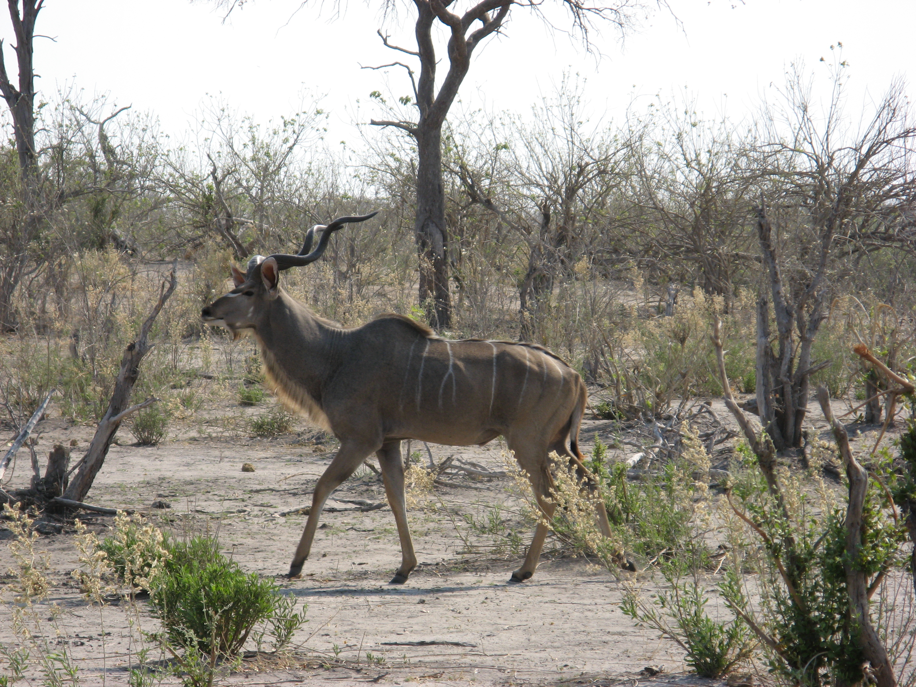 Our vehicle at Chitabe had a roof on it, and was set up a bit different – 3, 3, 3 as opposed to 2, 2, 3 – those two seemed to cancel each other out, as the roof was nice but we had less room to put our gear and our feet. The drive from the airstrip into Chitabe took about 25 minutes. On the drive to Chitabe we saw a massive kudu, but not too much else – at least nothing new. When we arrived, we were greeted by several people and Ryan, who seemed to be the manager.
