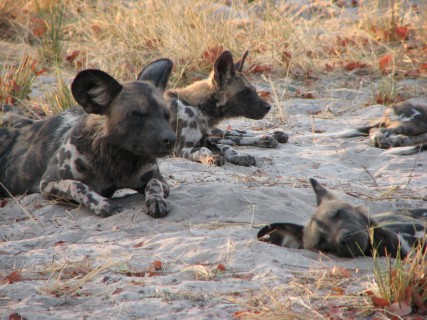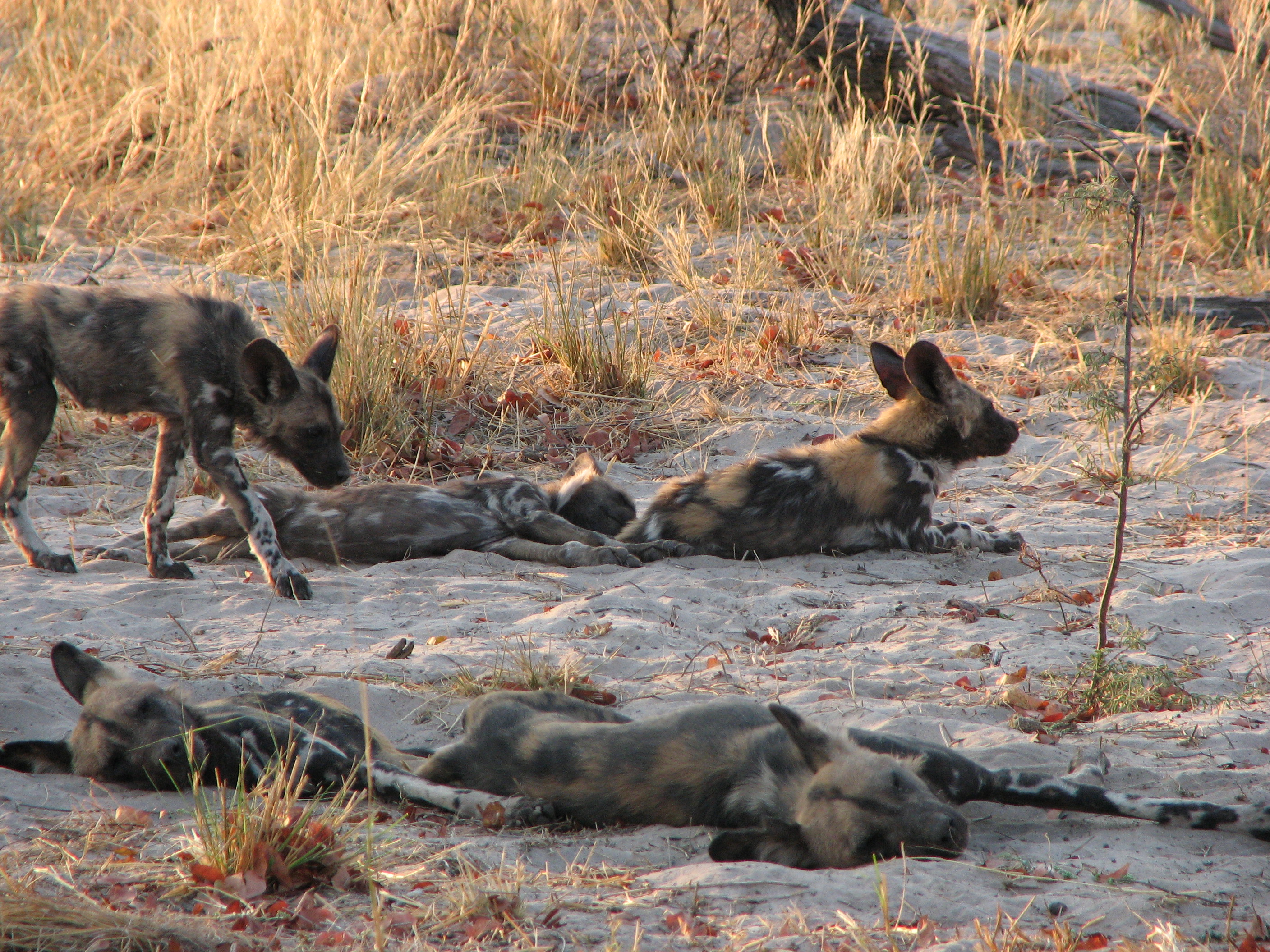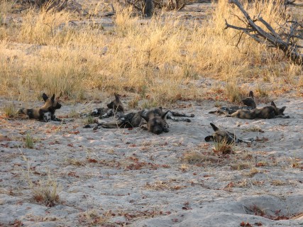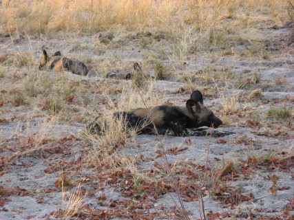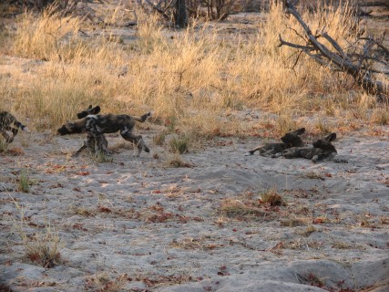 They recently took up a den on the concession. This pack had 5 pups. We got to see a "greeting ceremony" when one dog who has been away for a bit comes back to the group – lots of noise and running around, not that different from what happens to us when we get come home every evening. We stayed around the dogs for quite some time. Some of the highlights included: