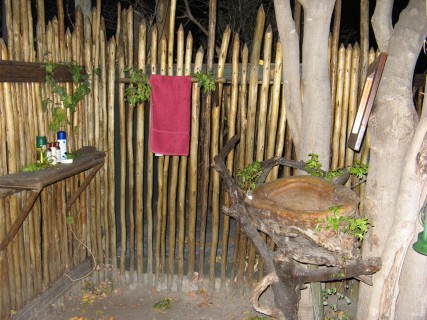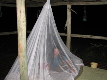 Back at the camp, it was actually starting to drizzle a bit as we got ready for dinner. We had decided to spend the night in the hide – a place outside of camp that is basically just a platform in a tree. The weather, although hot, had been clear and calm the whole time, and now that we were preparing to spend the night in the elements it was starting to rain and the wind was picking up. We ate dinner, and then took off for the hide. Right as we were about to get in the truck, it started to rain in earnest, but Crystal decided we would "tough it out."
