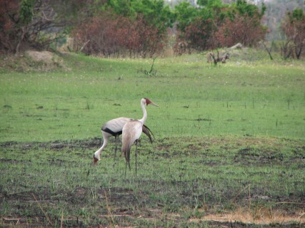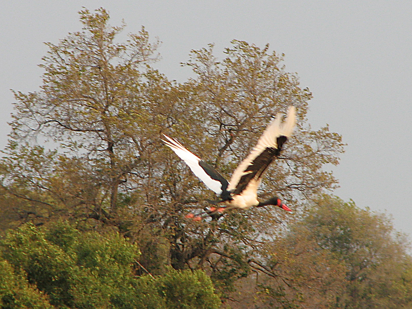 We made it over to the fresh green area, which looked to be the most appetizing area we had seen – huge open fields of low green grass. There were barely any animals, however, just some Waterbuck, impala, and baboons over a huge area (less than two dozen animals in total). We did get some good bird shots, including wattled cranes and saddle-billed storks. We even got to see two saddle-billed storks flying – their wingspan was enormous.
