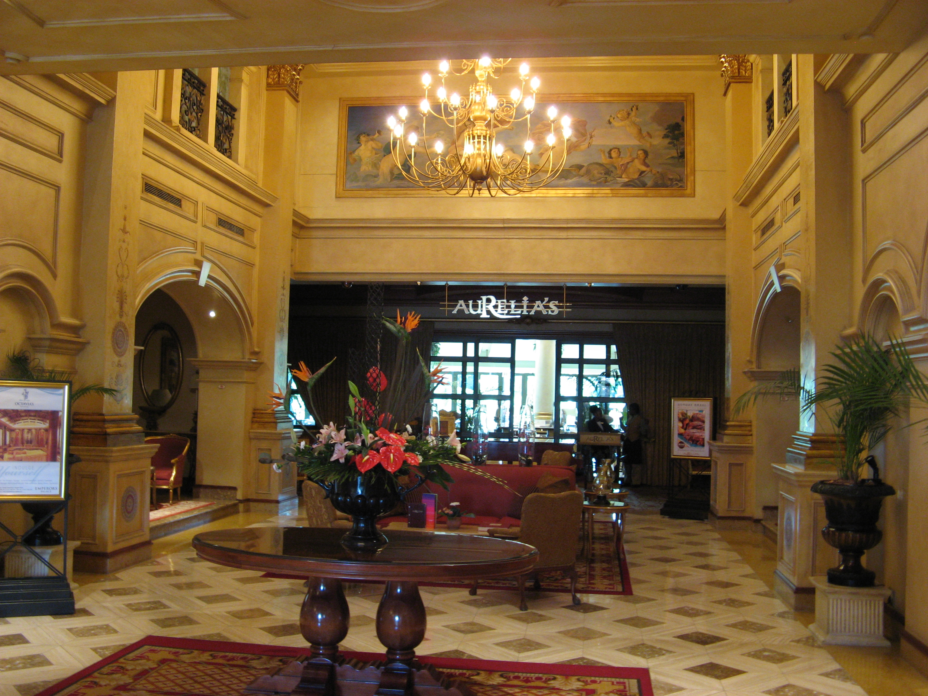 When we landed, we found out that our hotel was both extremely close to the airport and also a 5 star hotel attached to a casino. When we got there, it looked like something you'd see in Las Vegas, and we were happy our travel agent Julian had picked it out. Then we got into the room, which looked very nice. But the water did not work, nor did the WiFi. So we couldn't clean up, nor could we upload any of our photos or check the news. We had set aside a favorites folder, so that we could at least upload some of our better shots in case we lost the computer and/or our cameras. We called the front desk, and found out that there was a general power failure in the area. So everyone just went off and did their own thing while Justin caught up on the diary.