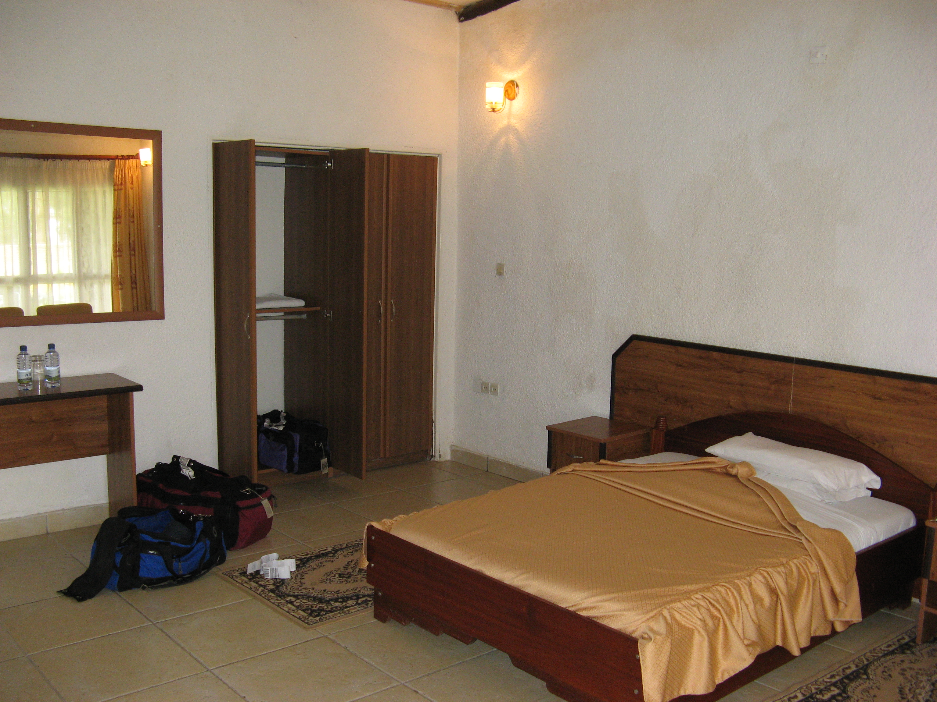 Fortunately, about an hour before we were due to take off, they called us to board. We didn't actually board, however, we just went to this much, much larger room behind the duty free shops where we could actually sit in peace. There was one other airport we had been to that was like that – we think it was Kuala Lumpur, but at least there seating existed on both sides of the boarding area. The flight to Kigali was short and uneventful. All of our luggage was thankfully there, though when leaving the airport we had to unwrap all of the saran wrap that the people in JNB had put on it, since the entire country of Rwanda has a ban on polyethylene bags.