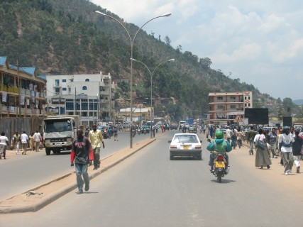 We drove a bit through Kigali, getting a very abbreviated tour of the city, including the Presidential compound and the Milles Collines (Hotel Rwanda). There were people everywhere on the streets – either people were conducting business on the side of the street or there were a lot of people not working.