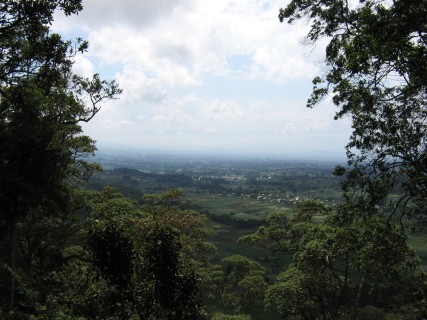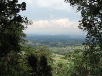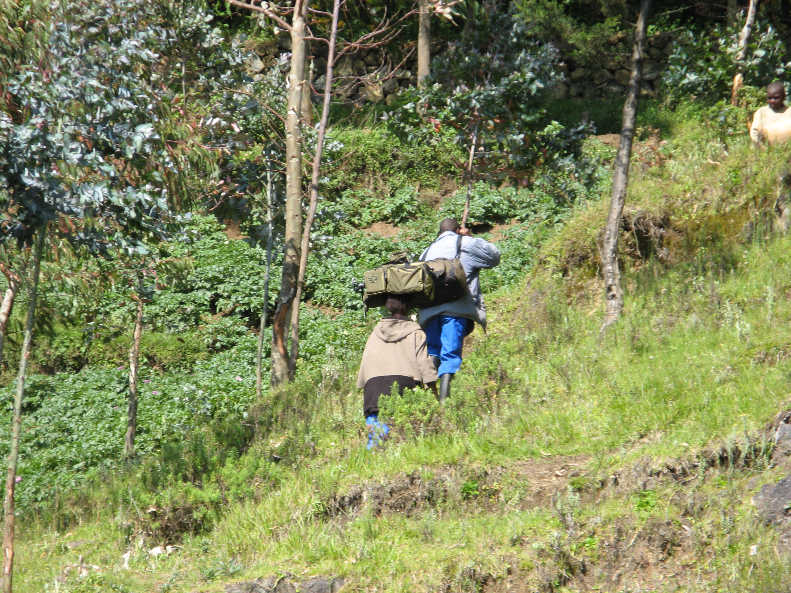 We started our hike where all of the farms came to an end, which was basically right at the border for the National Park, which was laid out with a 3 foot rock fence. The hike took us up pretty sharply at first, giving us some great views of Ruhungeri below and other towns in the distance. We also saw a Golden Monkey, which attracts many visitors to the area, albeit not nearly as many as the Gorillas. There were some nice flowers as well. Renee needed to stop fairly regularly, but none of us complained a bit, as we were a bit out of shape from 3 weeks of eating, drinking, and not exercising. Justin spent most of the walk at the back, chatting with Eddie.