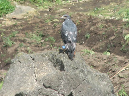 The walk down went much faster, but was harder on the feet, since our toes, especially Justin's, kept smashing into the front of the boots from the decline. The view was great, and Justin spotted a Dombeya. We made it back to the truck just as it started to rain – good timing. We also saw some sort of a hawk or eagle.