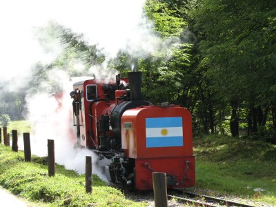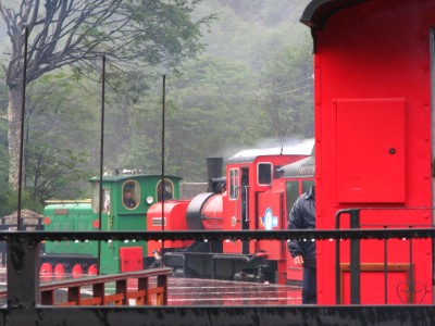 A small bus came and got us at 8:20 - we were the last people on board. We think everyone else boarded back in town, but our hotel had made arrangements to have us picked up at our place. This was to be our guided tour of the Tierra del Fuego National Park. It started, however, as an infomercial for paying additional money to ride the Train to the End of the World (Fin Del Mundo). The lady mentioned a couple of times that she couldn't specifically recommend any attractions, but then told us that if we didn't ride it, we'd just wait on the bus at the end of the train line, waiting for the train to arrive. Perhaps because they pushed so hard, our initial inclination was that this would be a rip-off. That being said, the other option - sitting in the empty bus - didn't sound so good either. But we didn't have enough pesos to pay for our tour, plus the additional amount for the train, so that pretty much settled that.