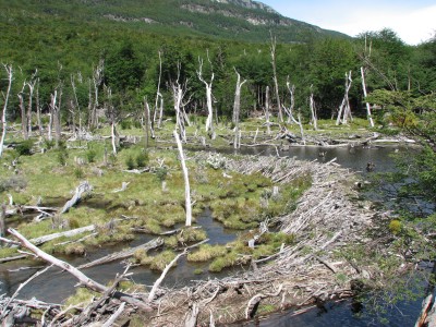 So everywhere we drove around, our guide pointed out "that's in Chile" or "that's in Argentina." From Laguna Roca, we headed to an area where there were some beaver dams. Beavers were introduced about a hundred years ago, but because of different food sources and weather their fur changed color and texture, and killed any chance of starting a fur industry in Patagonia. So the beavers stayed, and multiplied, with neither natural predators nor human predators. So now there are tens of thousands of them, and they're slowly eating all of the trees and making dams, protecting them from the natural predators that they don't even have here.