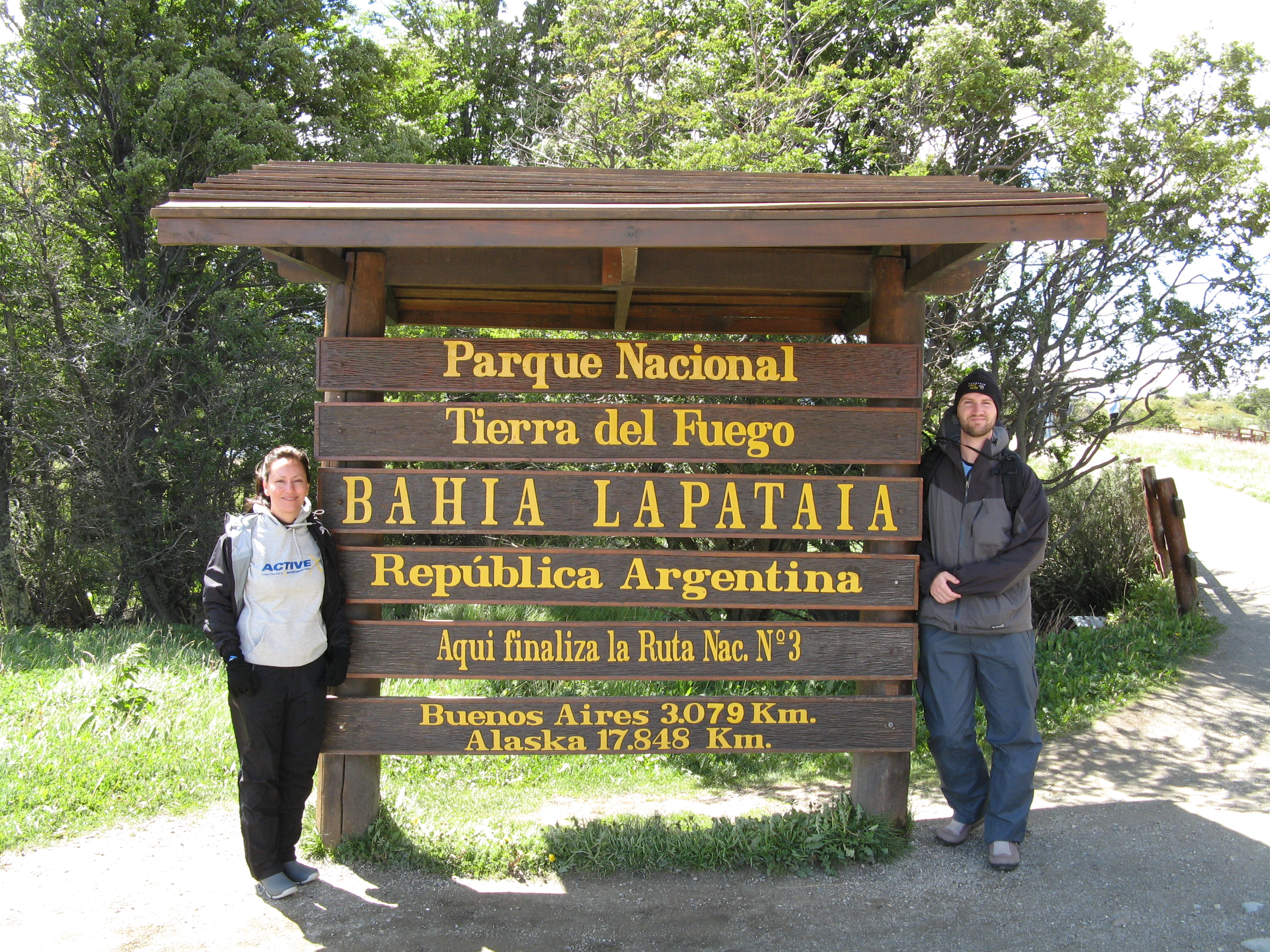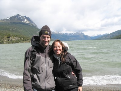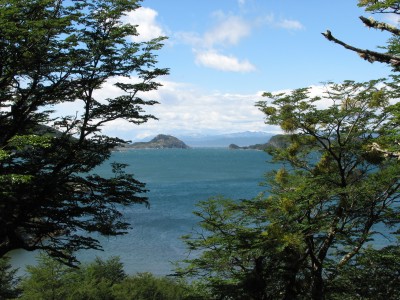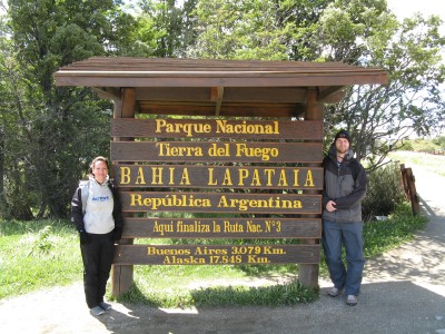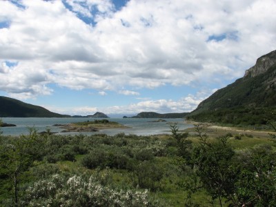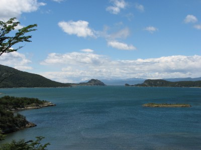 The last stop actually allowed for some walking. We stopped at Lapataia Bay, which feeds into the Beagle Channel. There were quite a few lookout points, and while the pictures may look nice, they are very deceiving, as the wind was whipping around and making everyone want to get back on the bus. Shortly before we left, we found another lookout point, this one higher, and protected by the hill it was on as well as the surrounding trees. Unfortunately, we didn't get to stay for long, since it was right near the time we needed to be back on board, and we didn't want to be late (again). The drive back was a little windy and stuffy (we were still in our puffy clothes), so we were glad it didn't last much longer than the 30 minutes it took. We dropped off most of our stuff, then headed back into the city center, hoping to get some empanadas. We looked up a place on the internet - our hotel amazingly had wi-fi - and located the address. When we got there, it was a place we had already been, but was not a restaurant, but in fact a gift shop. Frustrated, we went to a nearby parillada, which we had probably walked by about 15 times. It was all-you-can-eat, but did profess to having empanadas. And in fact it did have empanadas, and they (along with the papas fritas) were excellent. The meat was only so-so (not nearly as good as the parillada from two nights earlier), but the empandas and the papas fritas cancelled that out. We drank a bottle of Tempranillo, a type of grape we were not familiar with. It was very dark ruby color, but the taste didn't wow us.