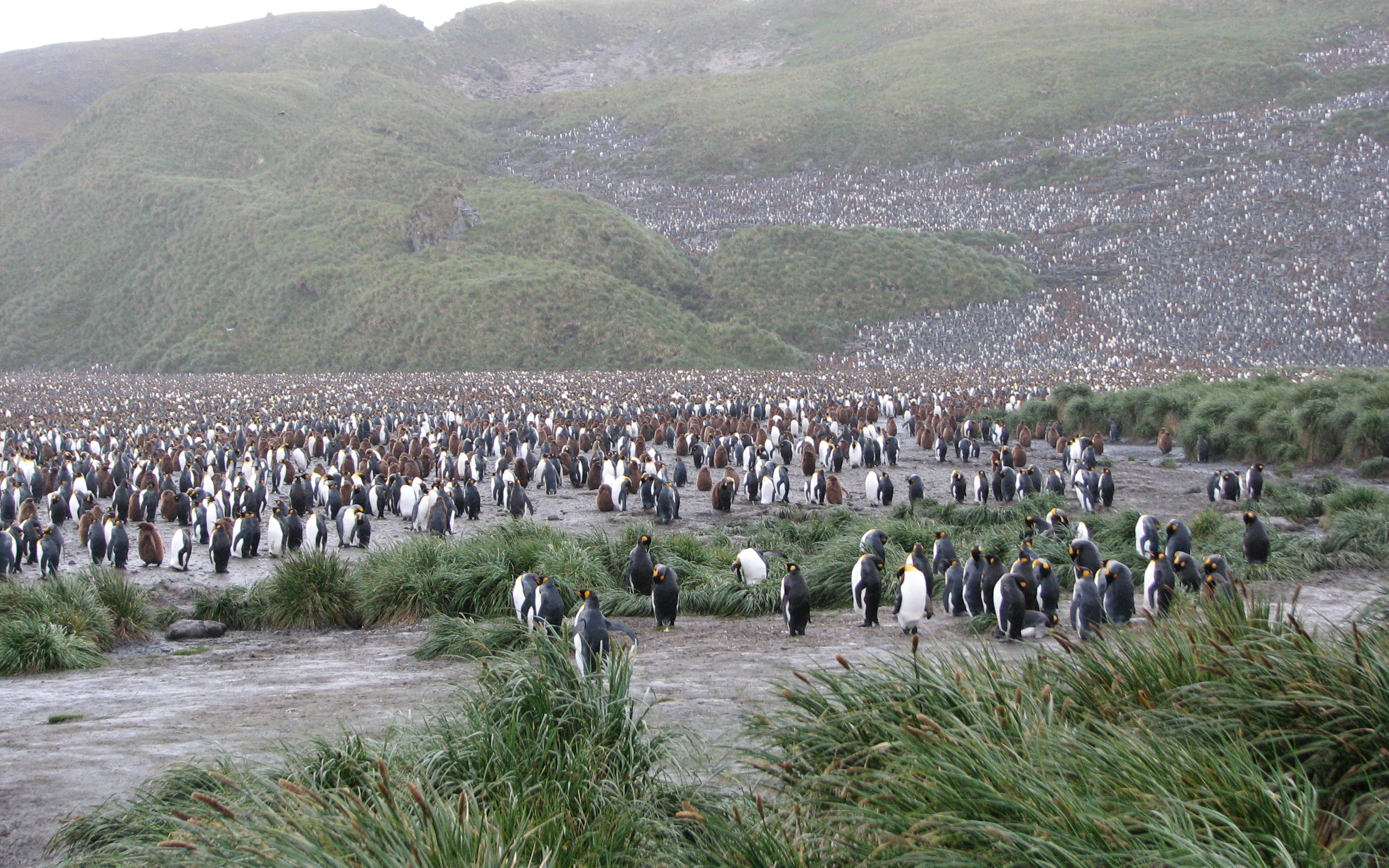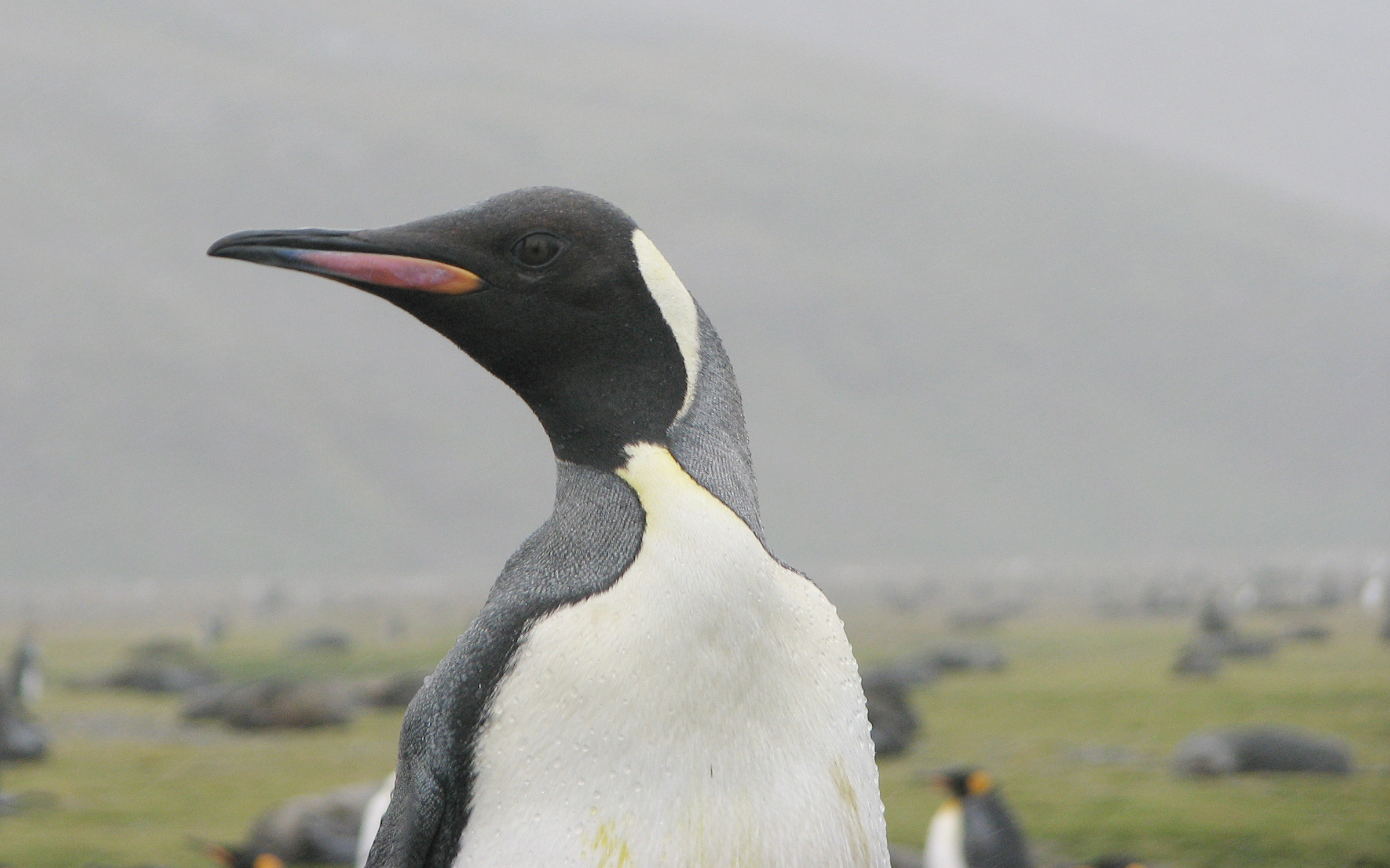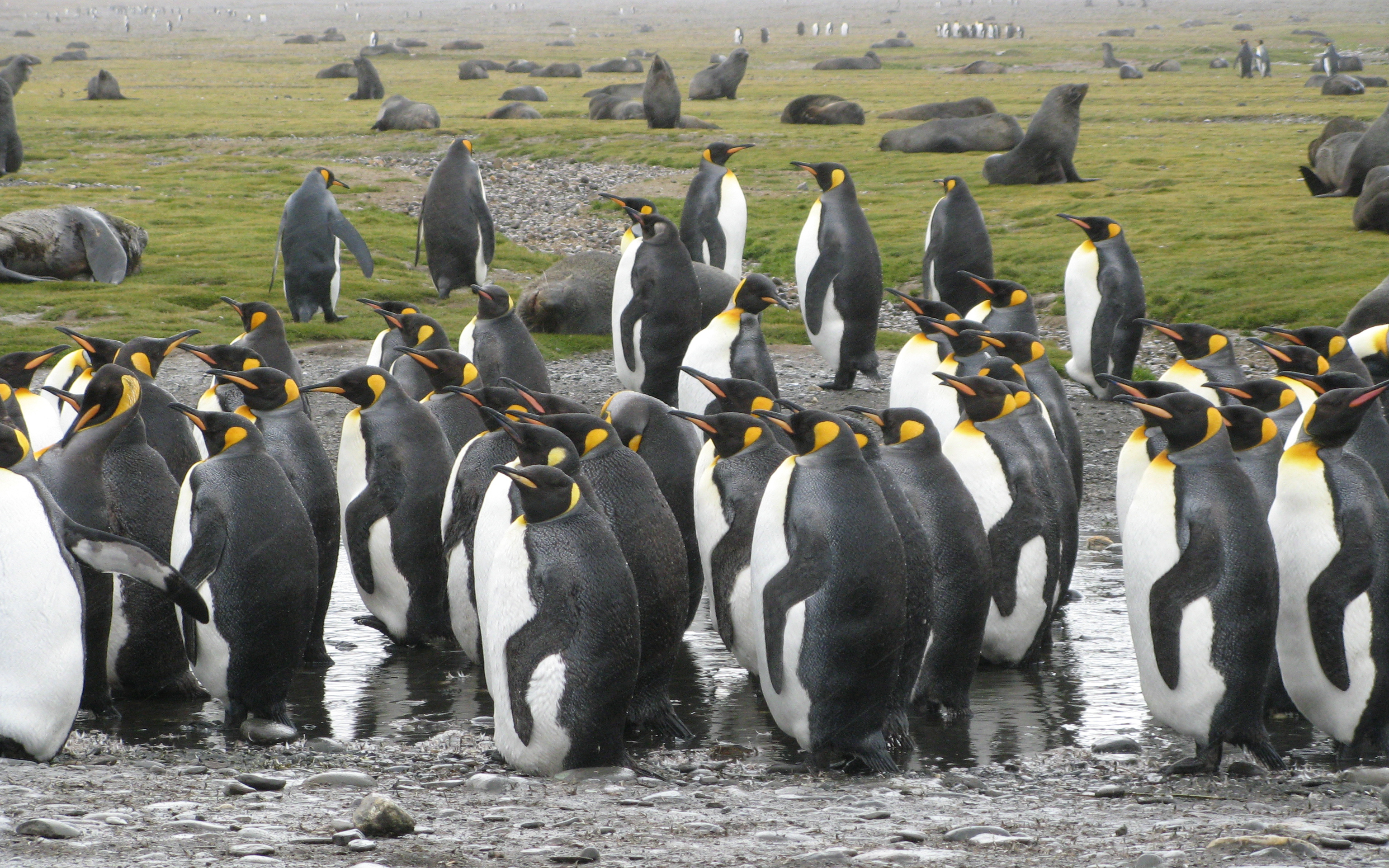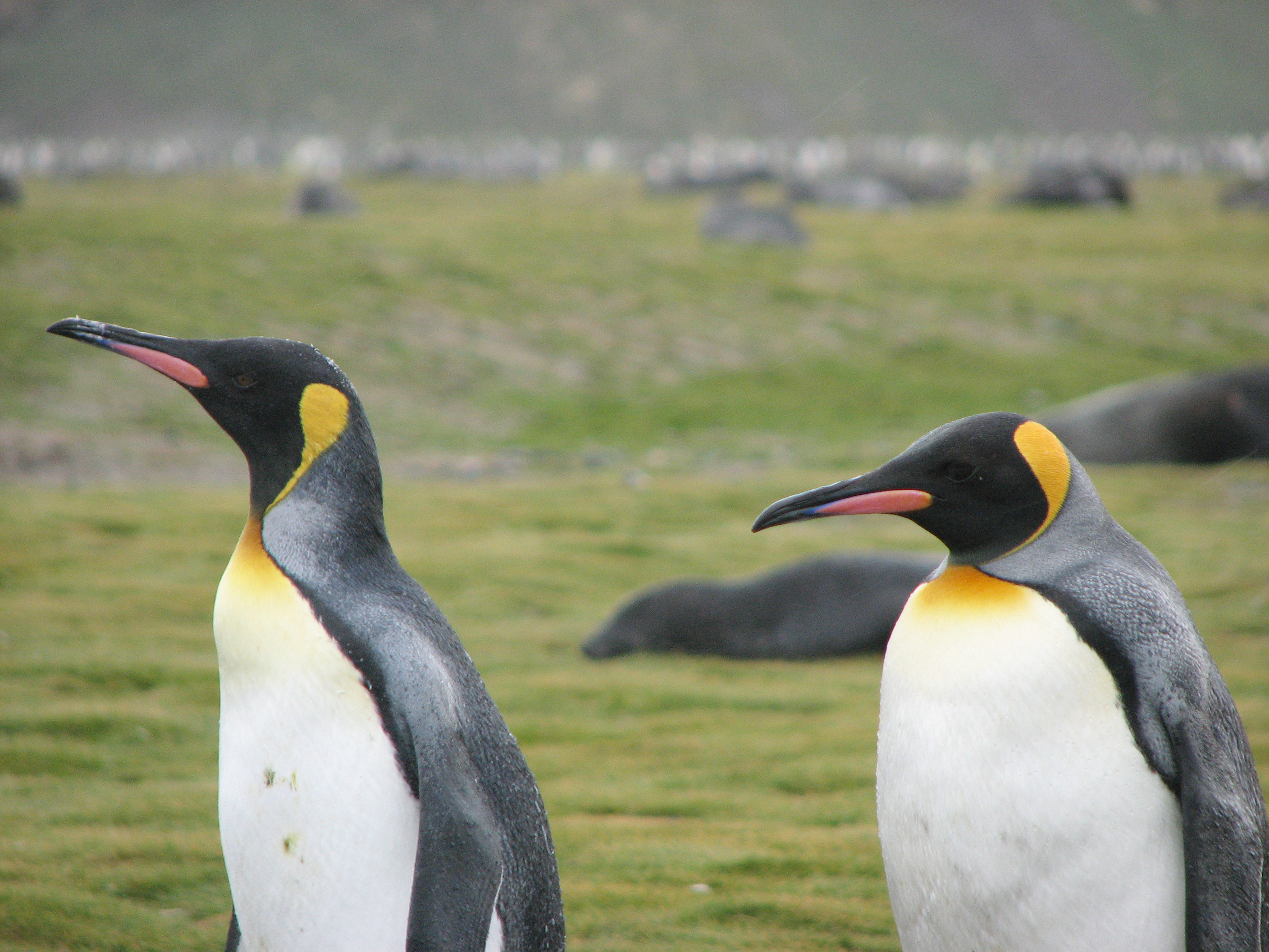 On the beach, there were fur seals and king penguins everywhere. We just sort of wandered around, meandering towards the rookery down the beach. We had to be cognizant of the fur seals because they are very territorial, and will charge people. We were told to just make a lot of noise and look big. We didn't have the same concerns with the elephant seals, which look like puppy dogs, and, while they make a lot of noise, are not dangerous to humans. It started to rain on our way over, and rained progressively harder the whole time we were there, but we kept taking pictures and video anyway. There's not much more to say on this - the pictures speak for themselves.