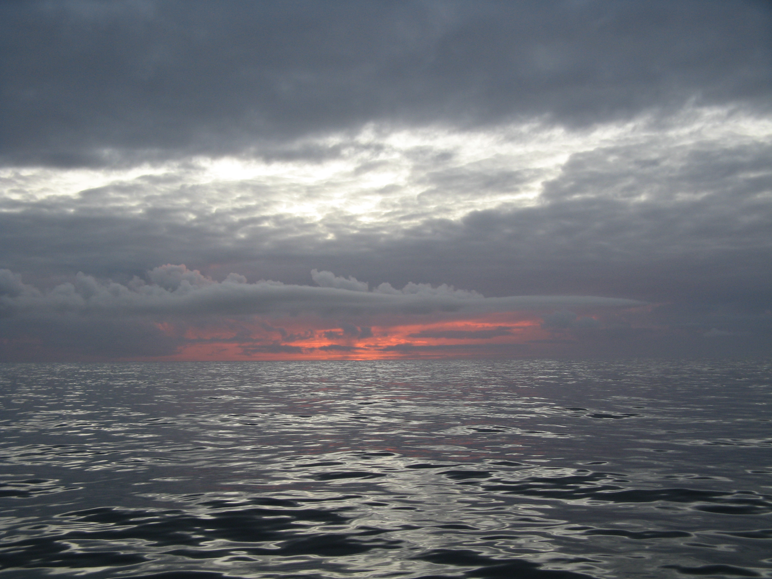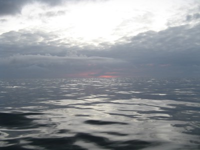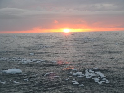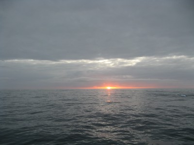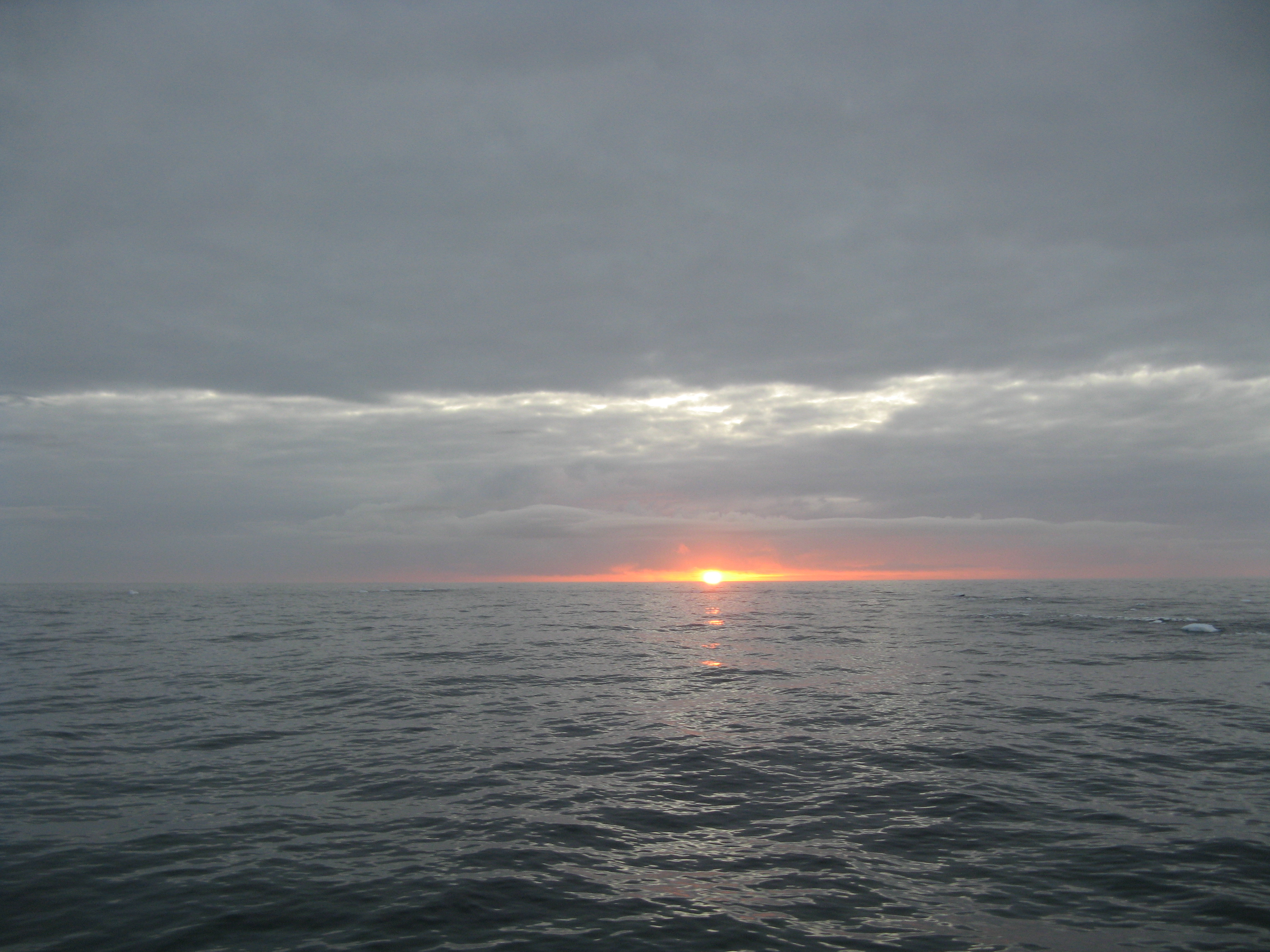 After dinner, many people went into the bar with their respective bottles of wine, happy to celebrate a smooth sailing day. Shortly before sunset (at 10:30), we saw a couple of large icebergs, and actually saw our first sunset (with the sun itself). The water was as still as could be - there wasn't a single whitecap, and the ocean had almost no motion at all. It was like going across a lake.