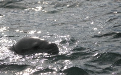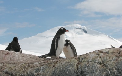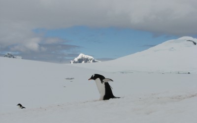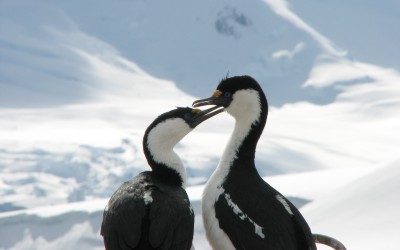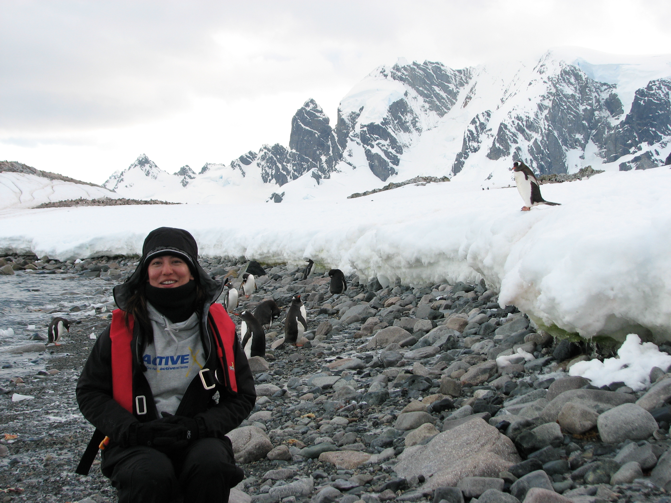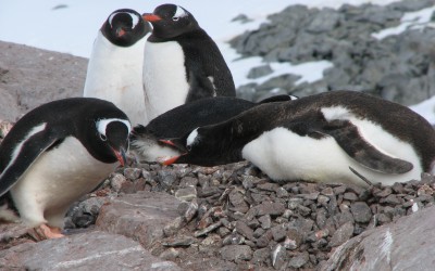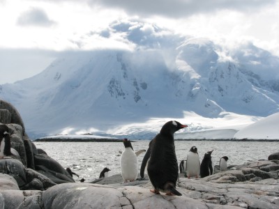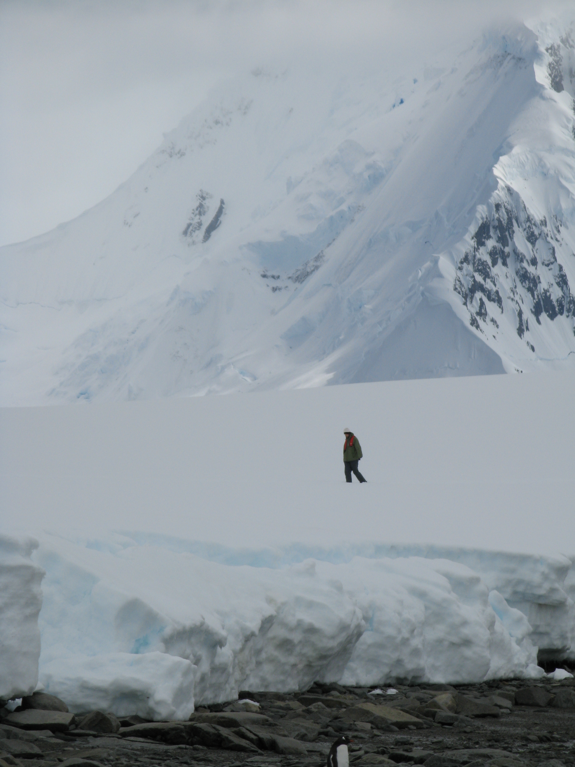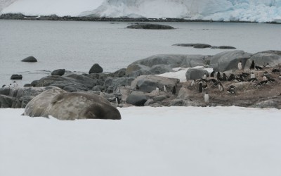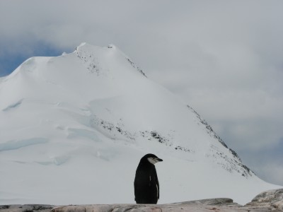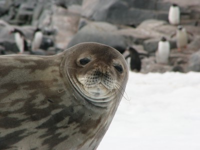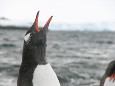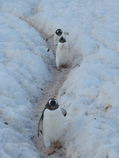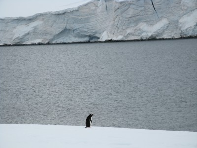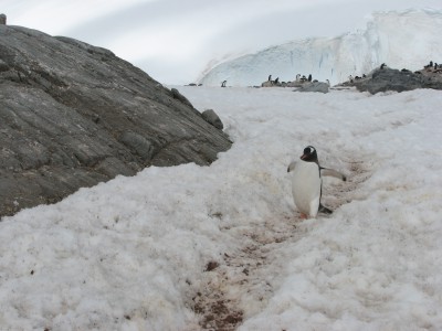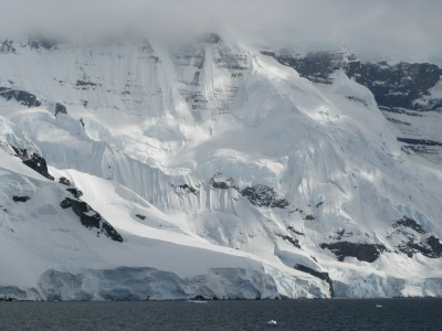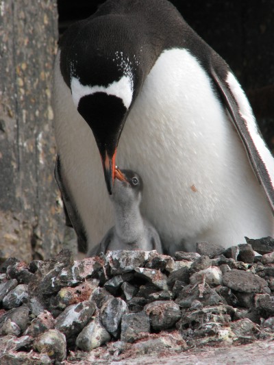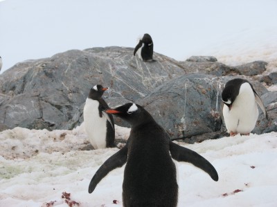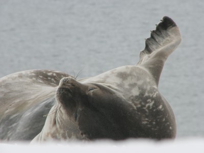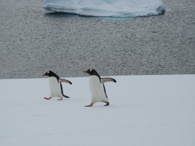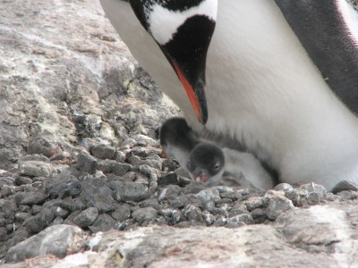 Both Jougla and Port Lockroy had baby Gentoos. We had seen some on the Shackleton hike (just before getting to Stromness), but many people had not. Some of the chicks looked as though they had just been born, while others seemed about the same age we had seen on South Georgia. Because it warms up first on South Georgia, chicks are born in South Georgia earlier in the season than on the peninsula. There were some skuas around, and the penguins made this weird shreiking noise, trying to scare them off. On the short zodiac ride from Jougla to Port Lockroy, Crystal saw a leopard seal in the water. It followed the zodiac around, and popped its head out a couple of times to see what was going on. She saw it again just before leaving Port Lockroy; Justin was in a zodiac and it went right under the zodiac. In the water, it really looked serpentine. It sort of slithered through the water, like an eel or a snake would.