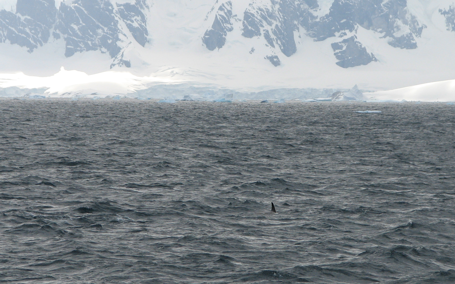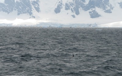 After breakfast, we all went outside, either on the bow or on the roof, to check out the scenery as we travelled through the Neumayer Channel. The views were great (although still not able to convey appropriately through photos), and there was other scenery as well. We had several whale sightings, and also a pod of Orcas (sorry, best shot we got) that came right past the left side of the ship.