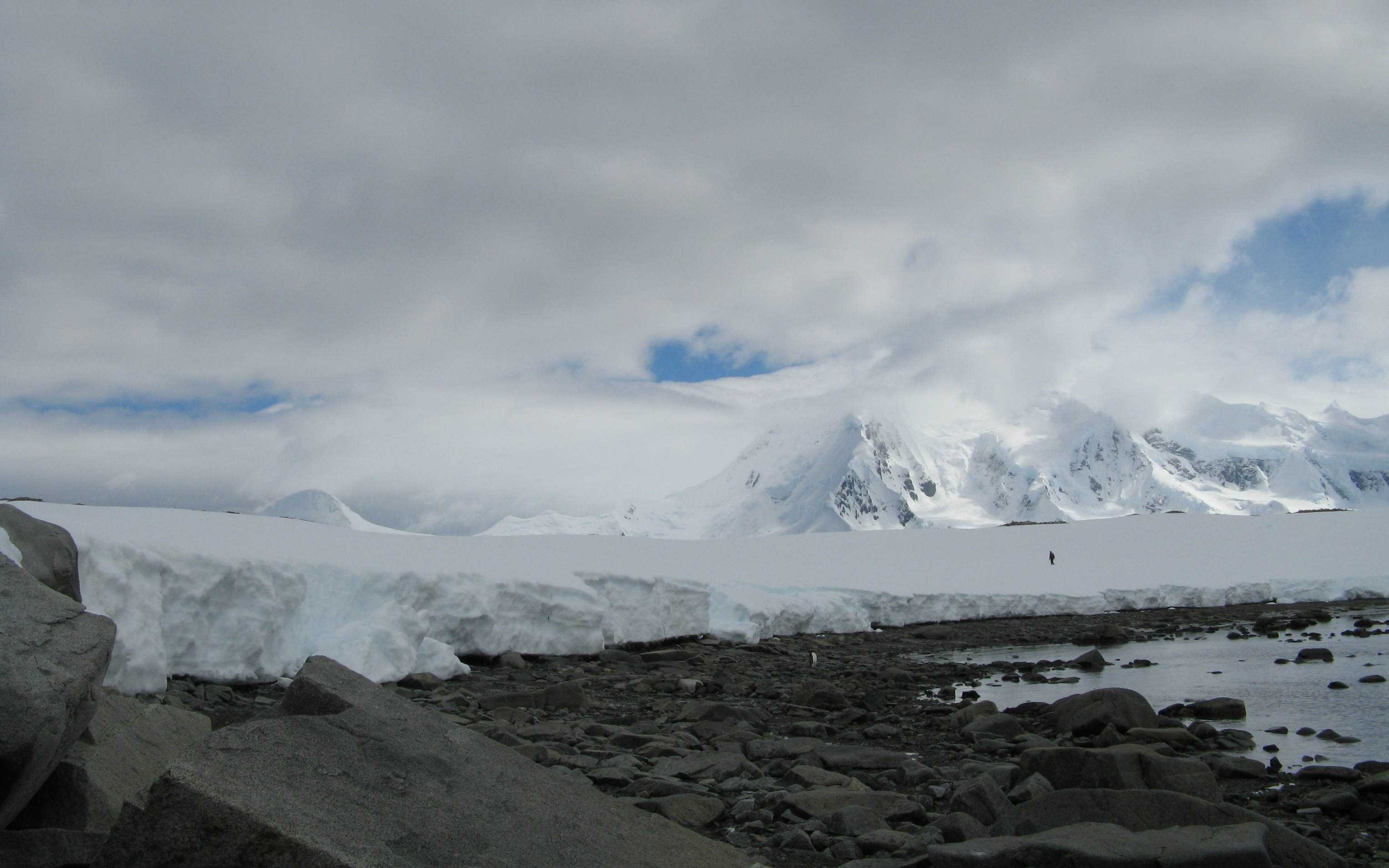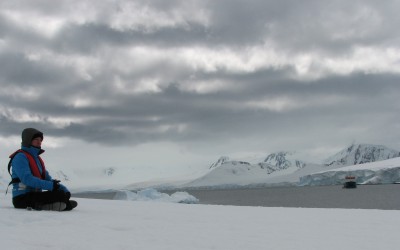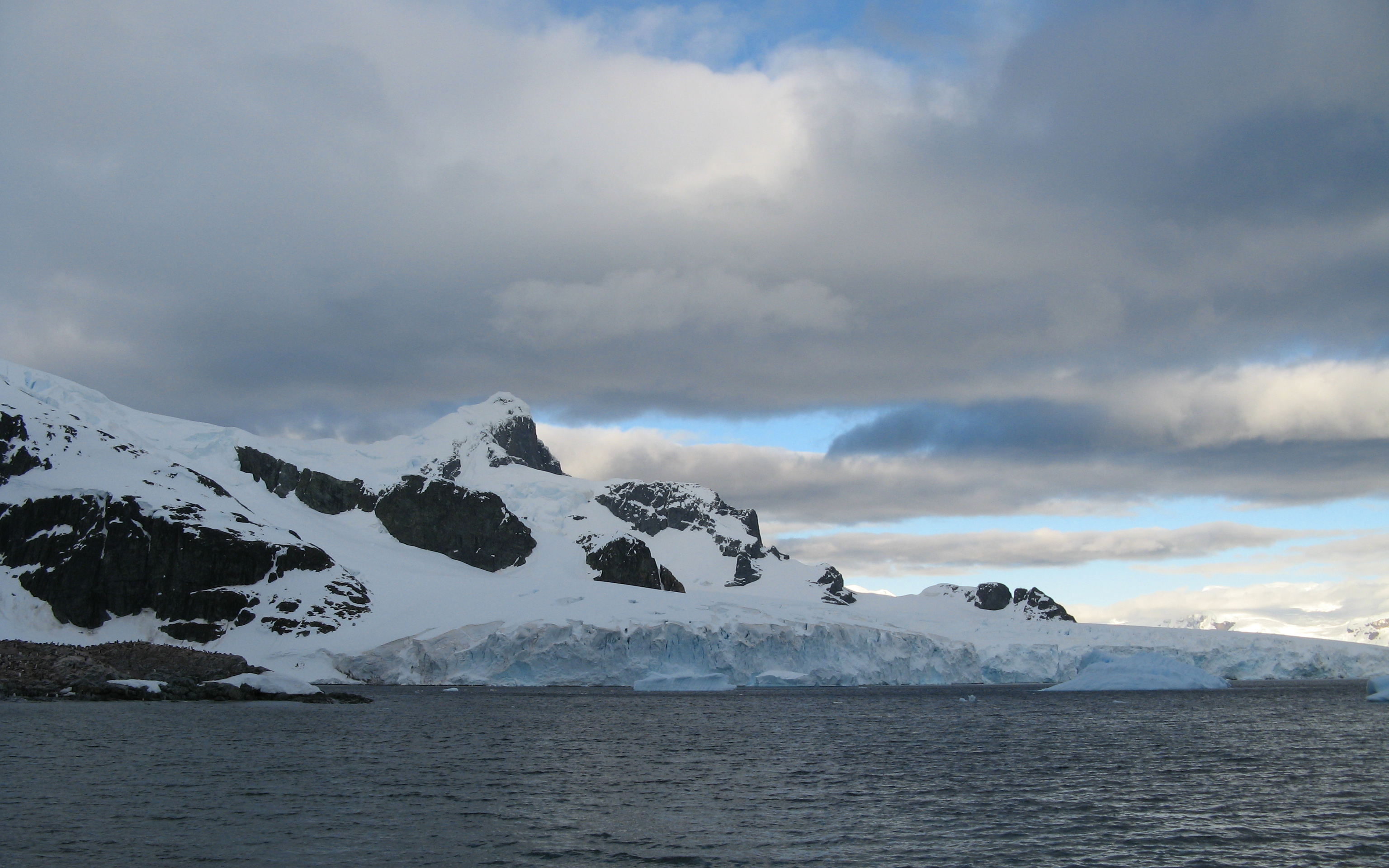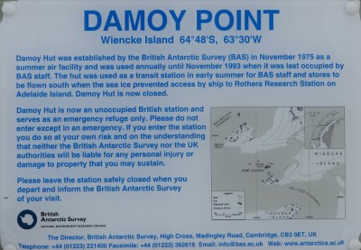 We also saw more porpoising penguins, and penguins on floating icebergs. The whole time there was a giant glacier in front of us - it looked like a dead end. But right before we got there, we made a right turn and kept going. We came in and removed some layers, planning on going up to the bridge. 2 minutes later, though, Anja made an announcement to put on warm clothes as were about to make a landing at Damoy Point.