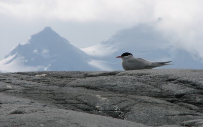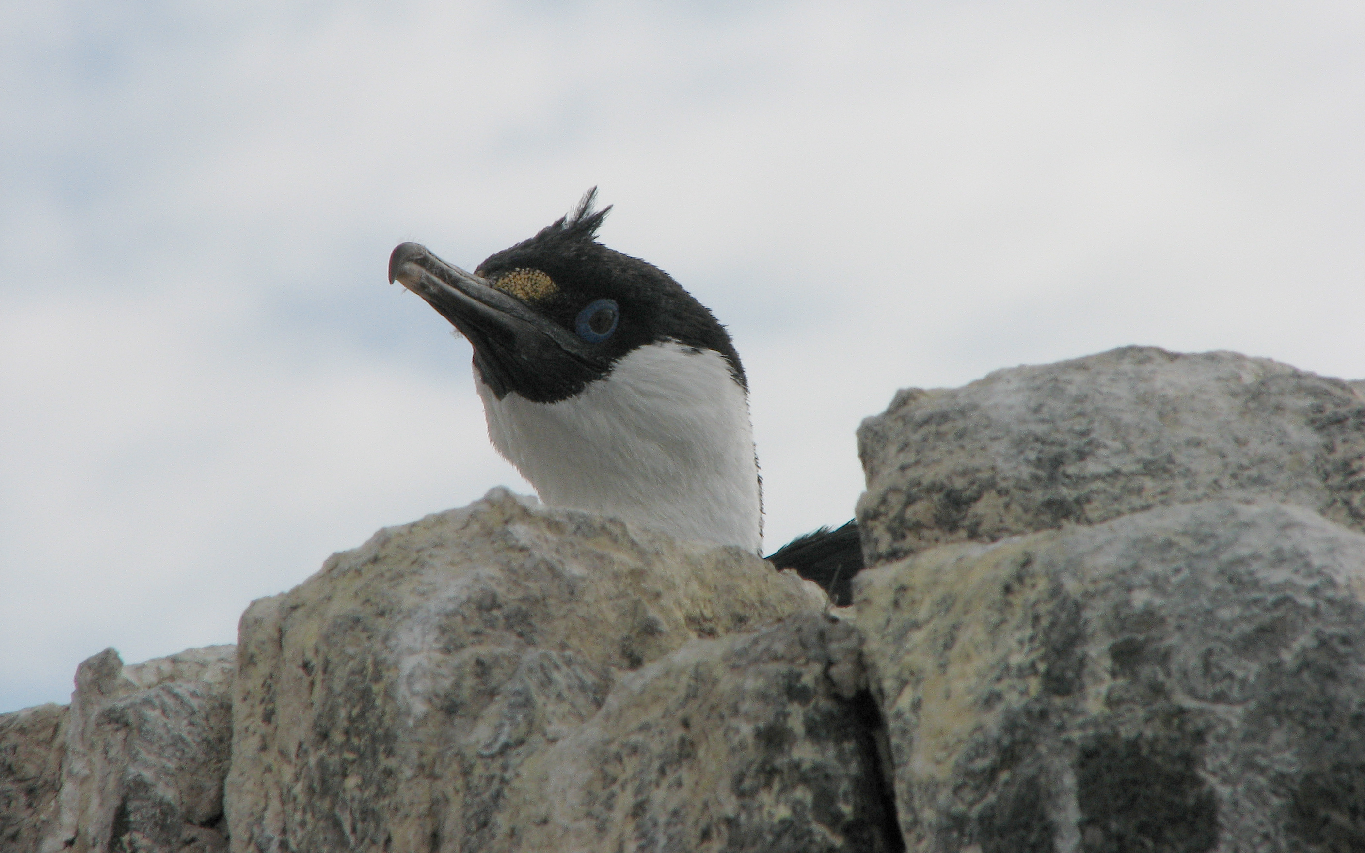 On Jougla, there were even more Gentoos, and a lone Chinstrap penguin. There were also some terns and shags. One pair of shags appeared to be doing a courtship dance. Compared with our other landing sites on the trip, this one was nice in that many contours. There were a lot of small hills, allowing vantage points both up and down, shooting angles we hadn't had previously. Perhaps because we had been to numerous rookeries now, and had seen Gentoos all over the place, we weren't as interested in getting photos. Instead, we sat around and watched them do their thing. They have penguin highways all over the place for going between areas, going to the water, and so on. They have rock nests, and are always stealing rocks from their neighbor's nest to make their own nest bigger. After watching them for an afternoon, we got the impression that all they do is steal rocks or fight off others from stealing their own rocks.