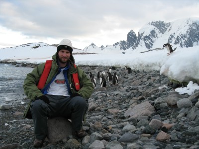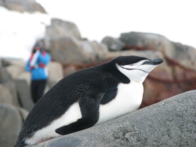 We took the long walk back for lunch, and then it was nap time. Crystal went right to sleep; Justin tried to stay awake, but ended up falling asleep in the bar (not from alcohol, by the way). Shortly before our zodiac landing, we brought the head of the small fort at Port Lockroy on board to tell us a bit about the area. We're not sure what the purpose of this is, but given how remote this area is (there are only 4 people at the fort), perhaps he just wanted to talk to a group of people. Anyway, after he was done, we got on the zodiacs and then split into two groups. Half went to Port Lockroy, and the other half went to a neighboring island, Jougla. We started there, not particularly interested in doing more shopping (and the gift shop at Port Lockroy made the other places we had been seem like a flea market).