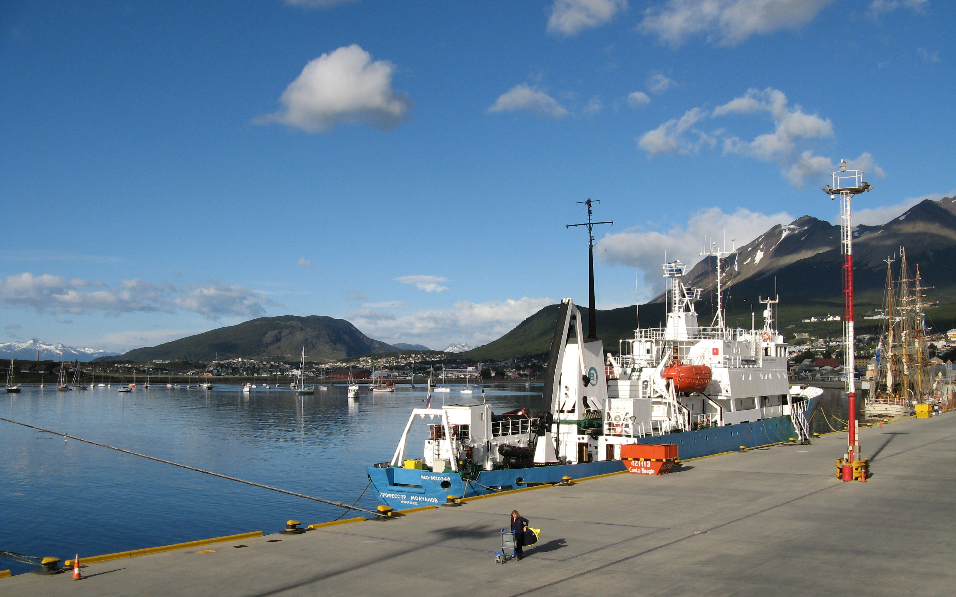 Today we got our last "beautiful good morning" wake up call from Anja. We were just about docked at Ushuaia, and it was actually nice outside. We could see a very big (for Antarctica) cruise ship, and also our sister ship, the Professor Molchanov.