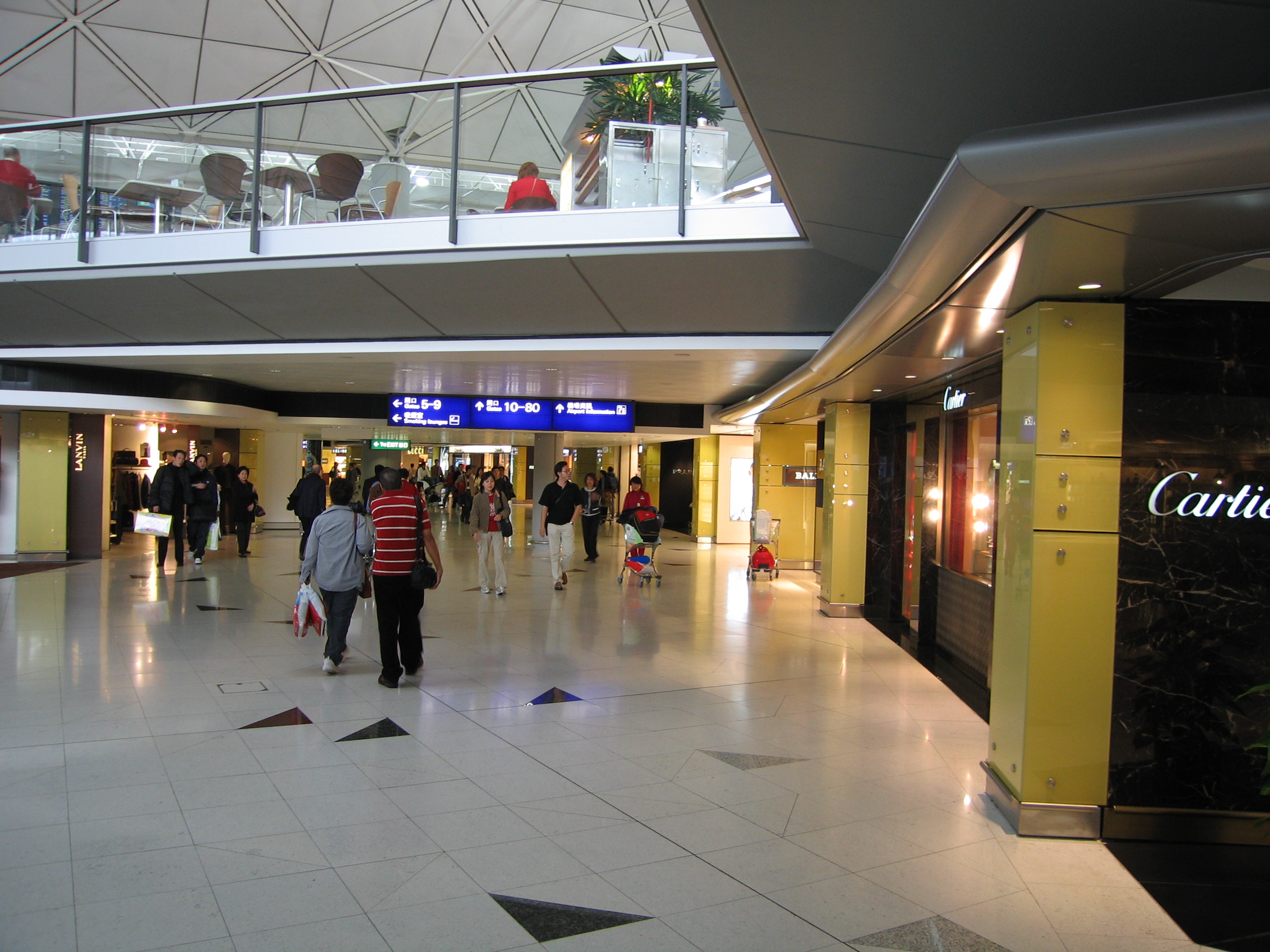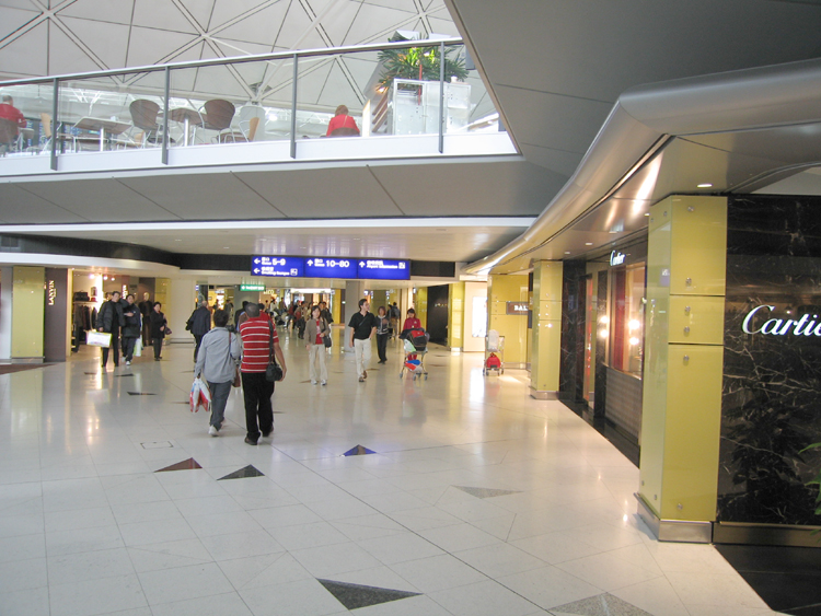 Because of stopping in Seoul, and because of leaving late, even on the early flight, we arrived in Hong Kong 15 minutes after our flight to Kuala Lumpur left. They gave us some vouchers for a free lunch (although not really, since it wasn't enough to cover lunch), and already had boarding passes printed out for a later flight to Kuala Lumpur . The only remaining issue, therefore, was getting in contact with the people who were supposed to pick us up in KL. Alas, our cell phones, which supposedly were set up to work overseas, did not work. We got Cathay Pacific to give us a phone card, and that card worked, but no one picked up the phone. I guess it was because it was a Sunday and no one was in the office. The Hong Kong airport was interesting, it looked more like South Coast Plaza than an airport all sorts of expensive jewelry and clothing stores in the concourses.