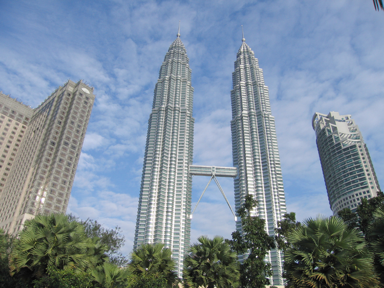 When we got to KL, we noticed on the approach massive groves of Coconut Palms, or so Justin thought. After getting out of the airport we arranged transport through our hotel, and will get reimbursed Justin noted the palms actually weren't Coconuts, but rather Oil Palms. And they are everywhere apparently Malaysia is one of the main exporters of Oil from these palms. During the drive from the airport to the Mandarin Oriental, we noted the roads in Malaysia are much, much, much better than those in the Philippines (not to mention Southern California when it rains). No potholes to speak of, very good overpasses and connections between roads, and everyone appears to follow the driving regulations.