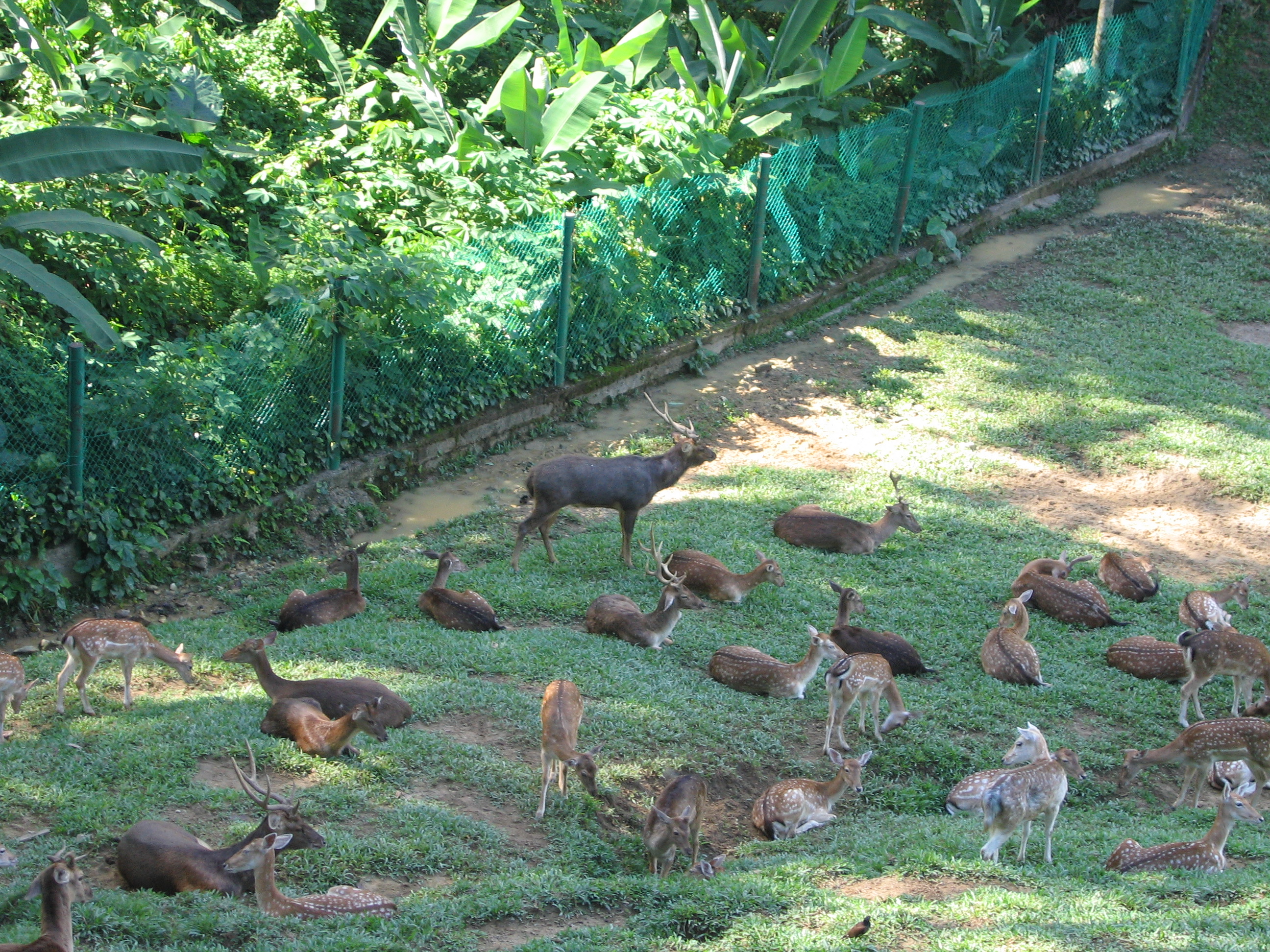 After leaving the butterfly garden we started walking towards the orchid and hibiscus gardens, which were supposedly within walking distance. While trying to find them, we wandered around the lake gardens area. There was literally no one around but us, the birds, and a bunch of trees. It was very peaceful, and seemed very distant from the metropolis just over the hill. When we finally found some people, they pointed us towards the hibiscus and orchid gardens. We started wandering again, not seeing them, but we did find a deer and deer mouse garden. The people there told us to walk up through the deer garden to get to the orchid and hibiscus garden. The deer garden was very nice. It was on a hillside, with us starting at the bottom and walking up hundreds of stairs, but usually only 5-10 at a time. Throughout the garden were many small cages with little tiny deer that seemed very afraid of us (maybe it was the bald head), and then one large pasture with 30-40 full sized deer.