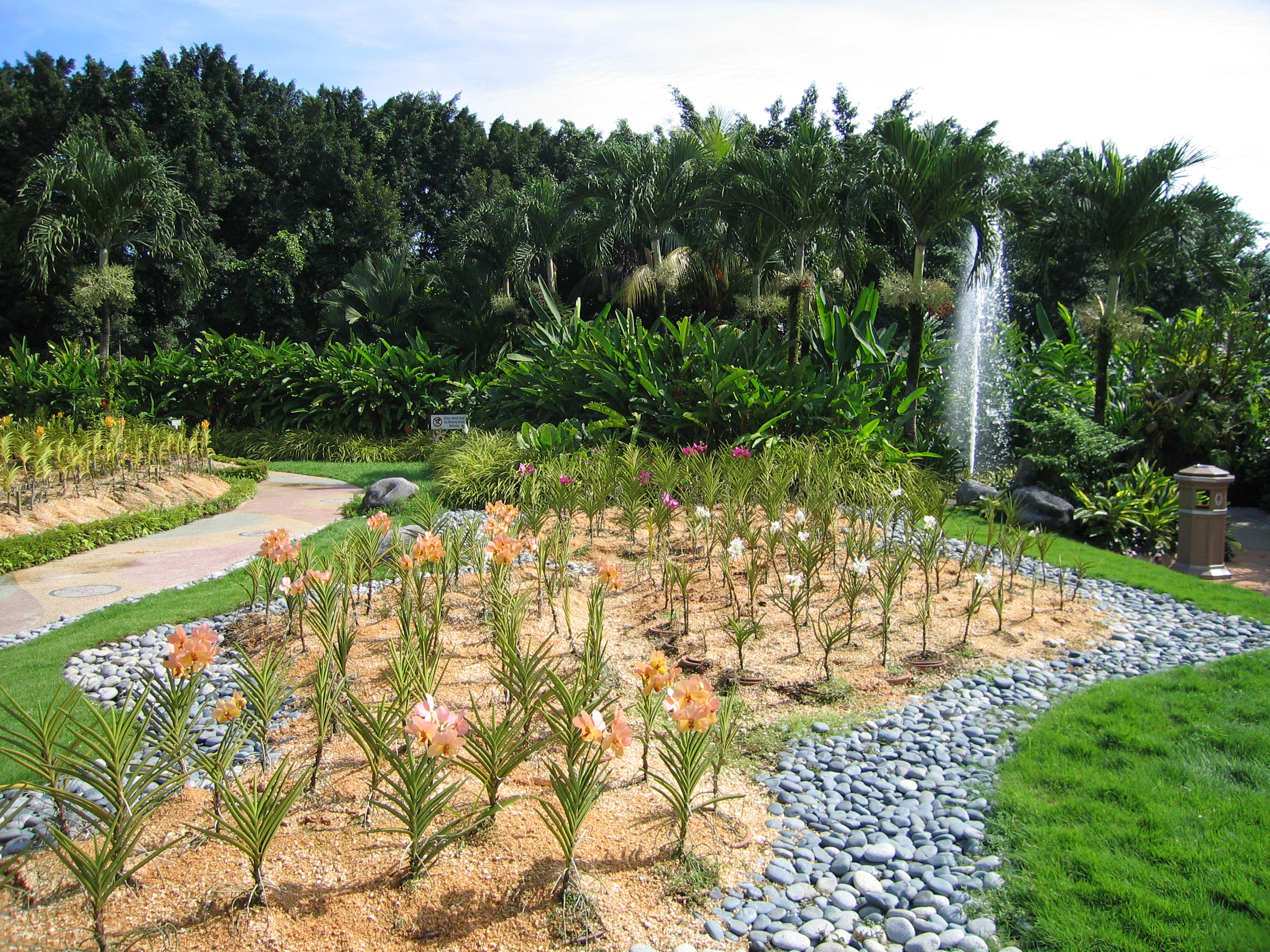 After getting to the top, we saw a far off sign that we hoped was the orchid and hibiscus gardens. Upon closer review, however, we discovered it was just a bird park. So now we had walked through everything but the orchid and hibiscus gardens. But then we found them about 2 minutes later, and they were quite nice, the orchid garden more so. Ironically, we felt that the deer and lake gardens were nicer (and cooler, because of the canopy trees) than the orchid and hibiscus gardens. We did get our exercise, though – we had walked around for roughly two hours.