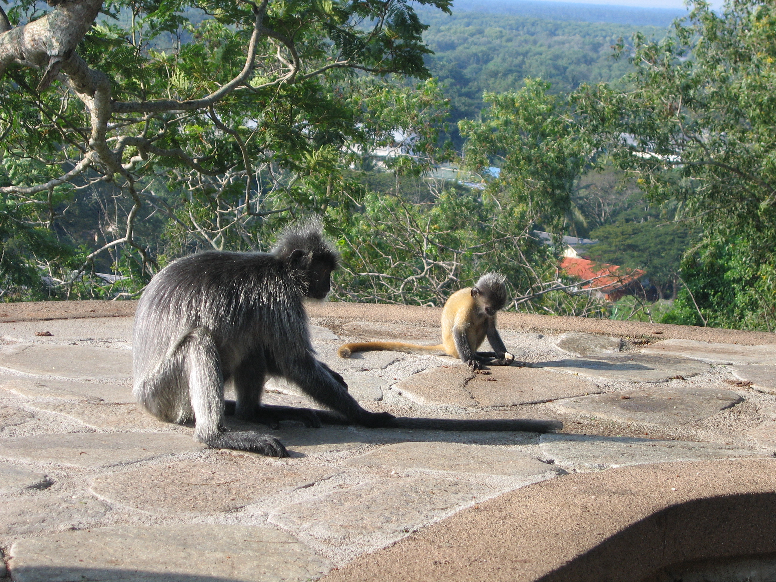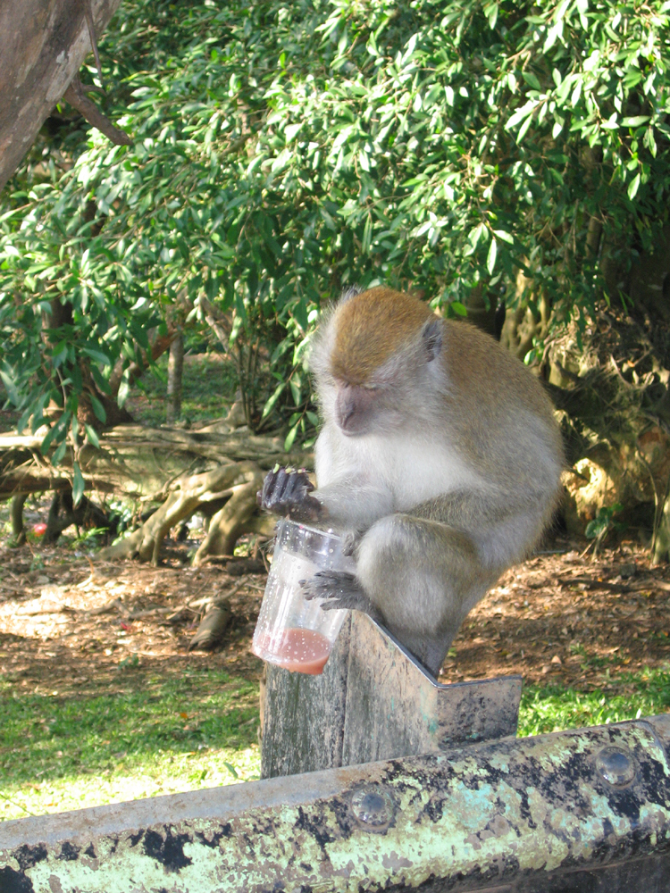 Our first stop was close to the ocean, on a large hill called Bukit Malawati. It had been used many years ago a Dutch fort – there were cannons still all around. The views from the hilltop were fantastic – panoramic views of the Straits of Melaka. The Straits are the body of water between the Malay peninsula and the island of Sumatra. The Straits are very busy with ships, even to this day – ships from India pass through the straights, go past Singapore, and then head up towards China. The best part of Bukit Malawati was the monkeys. They were everywhere, and Justin could get close, but not close enough to get any really good photos. Every time he got closer than five feet, the monkeys would scurry away. Hopefully the Singapore Zoo will come through.