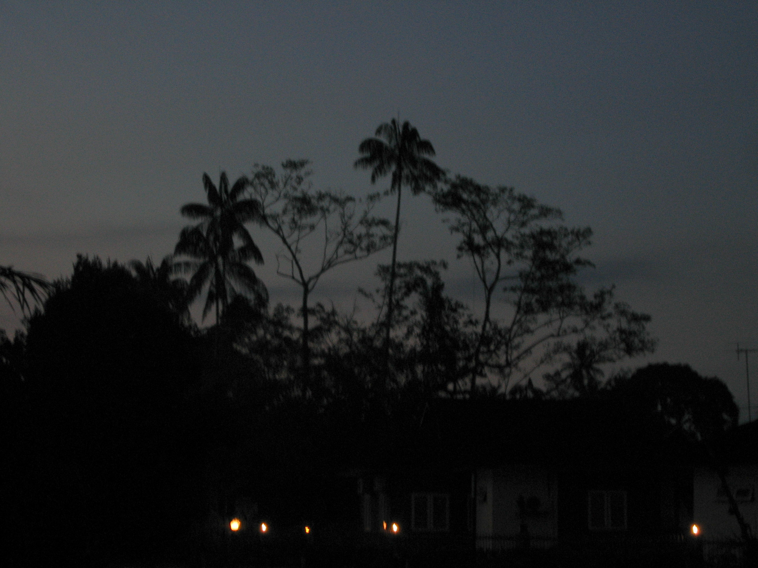 At 3:30pm we boarded a van for a firefly tour. Out west, near the ocean in the mangrove swamps are a bunch of fireflies that light up the night. We started off by heading southwest, past Shah Alam (where the blue mosque is), but continued in that direction. We were soon out in the country, in the less developed parts of the country. It was quite a change from KL. There were plantations of oil palms throughout most of the trip. The oil from oil palms are used in cosmetics, cooking products, and some other stuff. The Malaysians are trying to make a diesel fuel out of it, which would certainly boost their economy tremendously if successful.